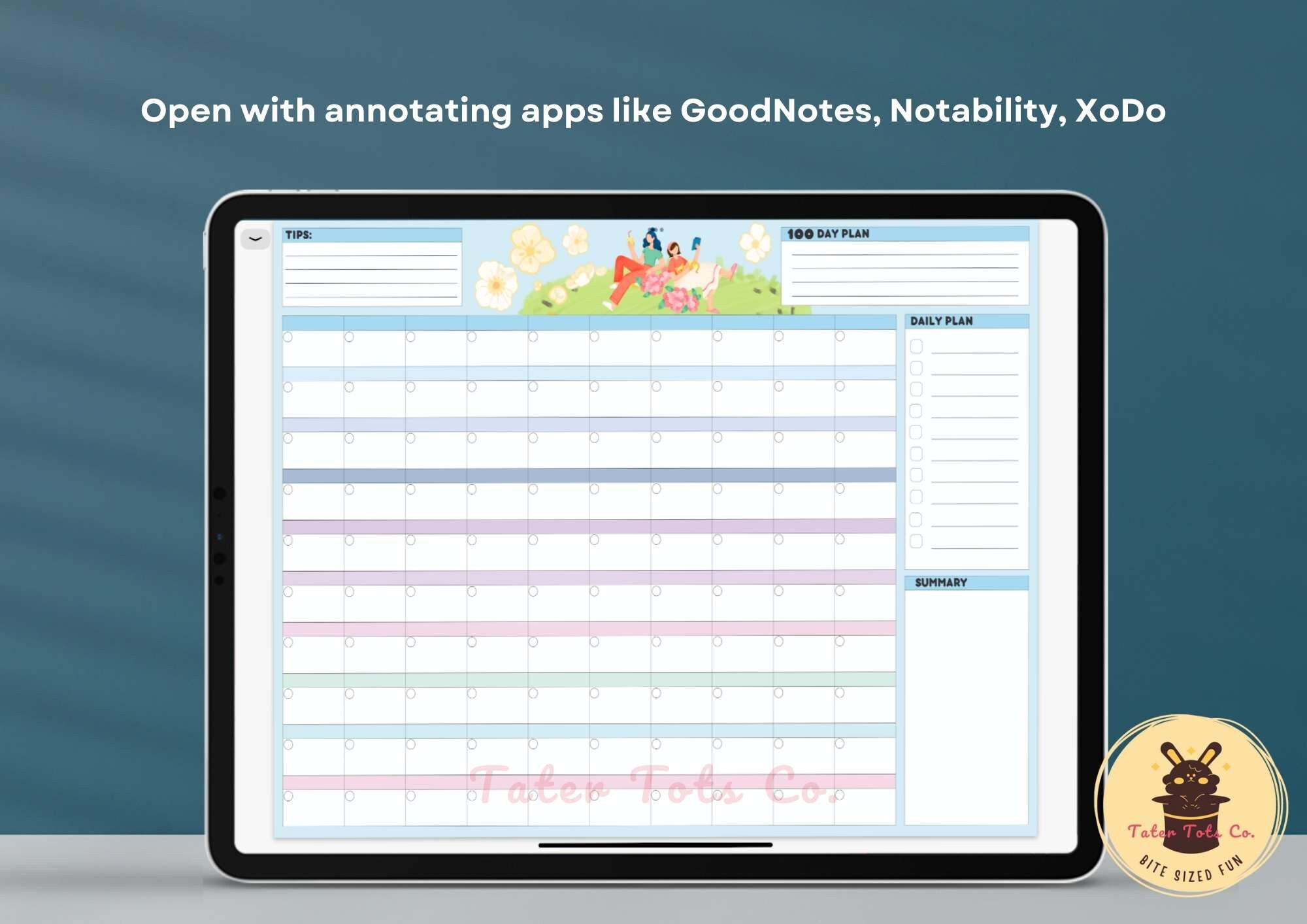 100 Days Challenge Planner Schedule Template Goal Tracker and Habit Builder Plan until the 100th day Instant Download PDF