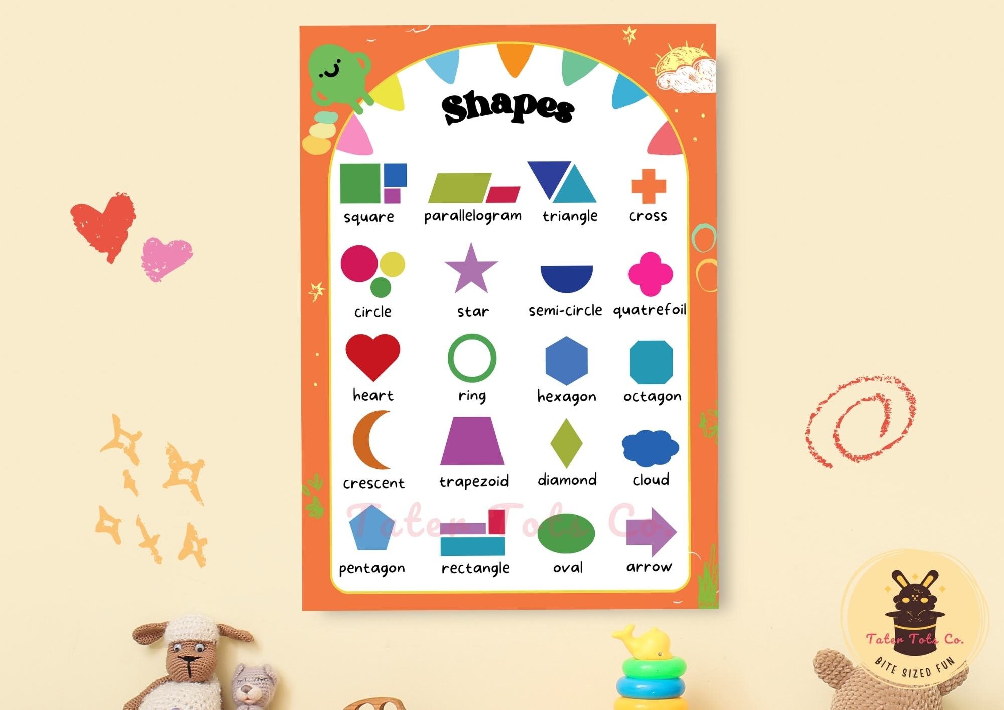 These posters are designed to enhance your home school classroom with vibrant and educational visuals of 2D geometric and 3D shapes. They are suitable for preschoolers who are learning about shapes and geometry.