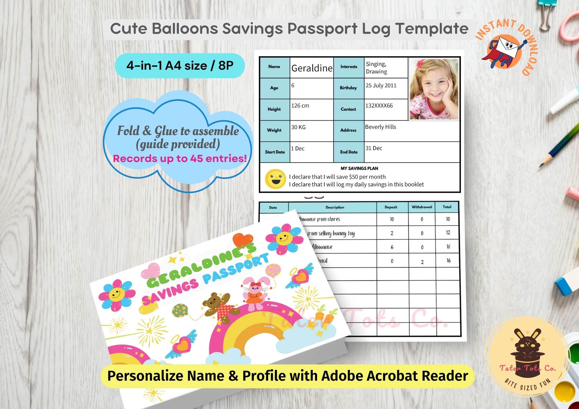 You can also attach it to a savings box for easy tracking. It can be easily downloaded once purchased and is ready to print.