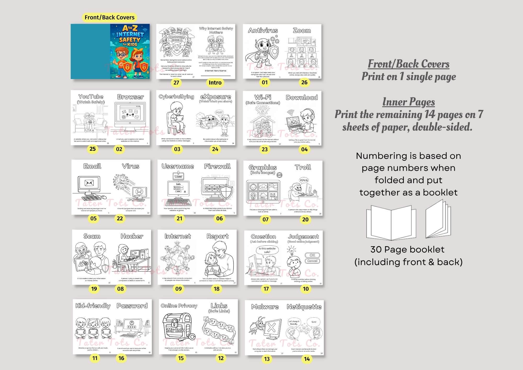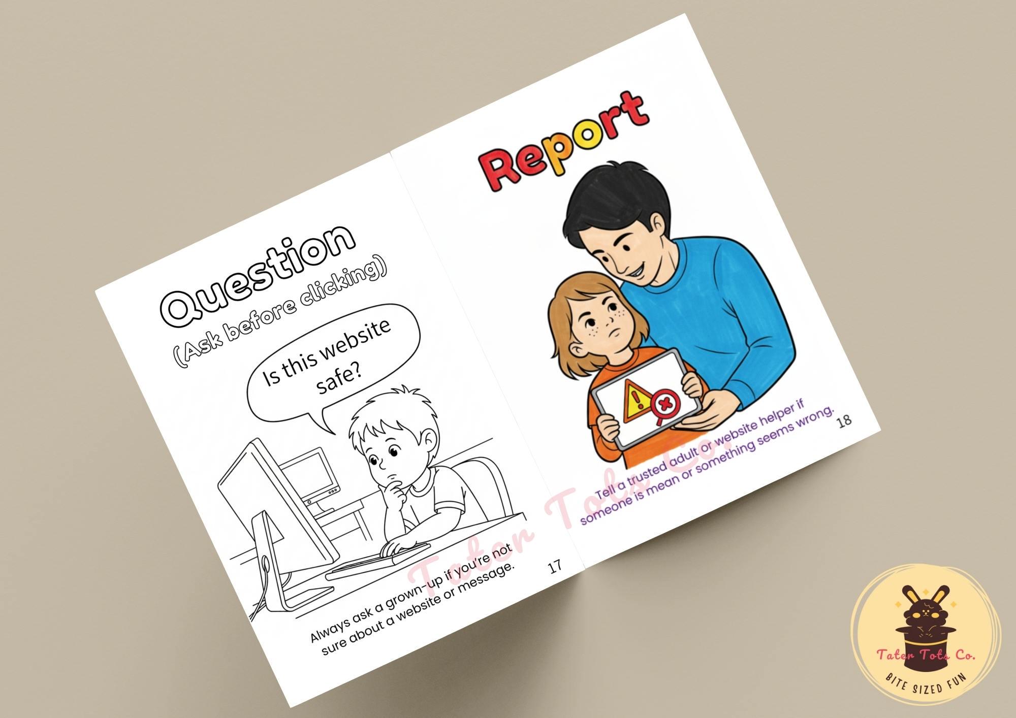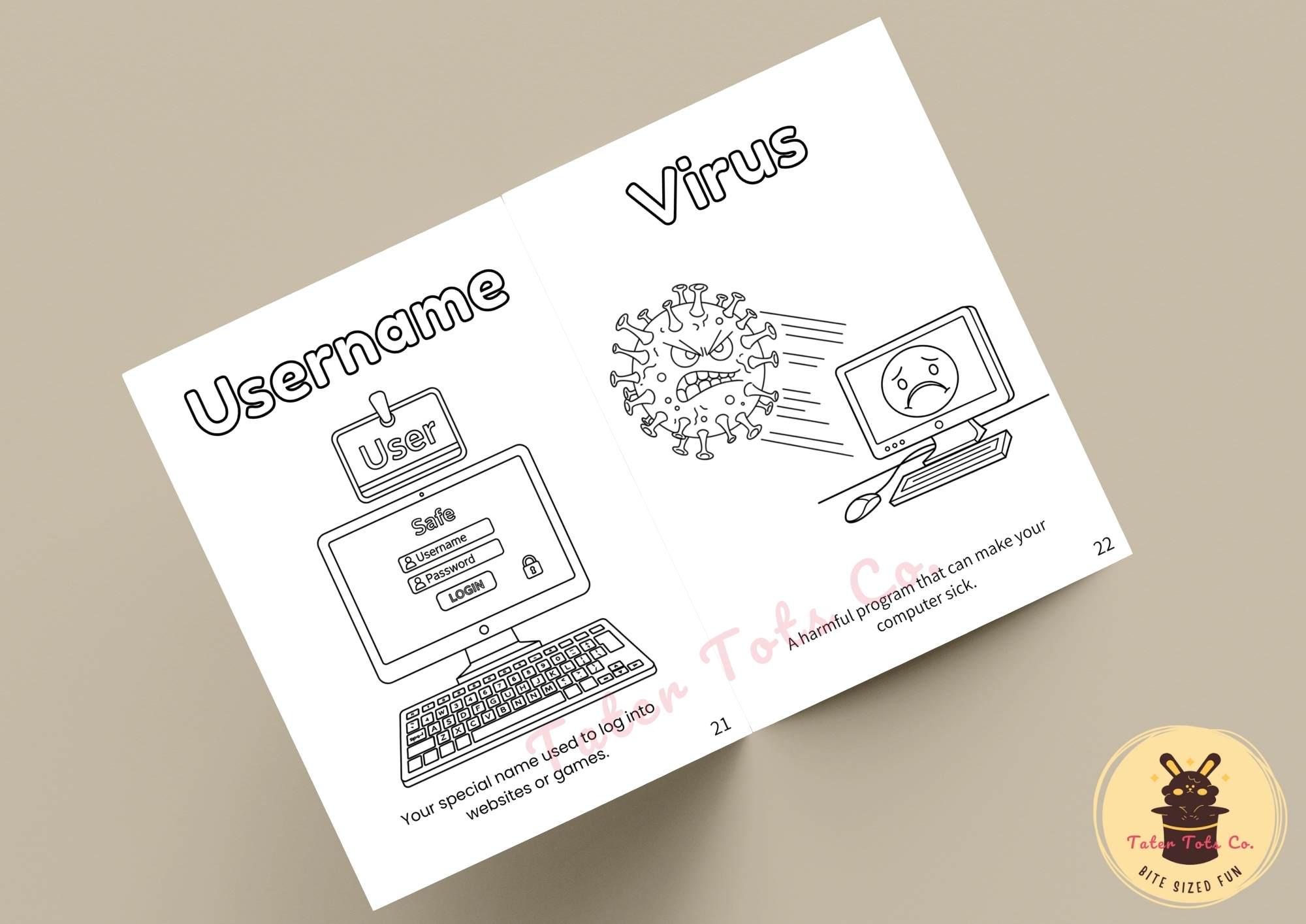 A to Z Internet Safety for Kids Printable Coloring Book | Travel Friendly A4 Bifold PDF Instant Download