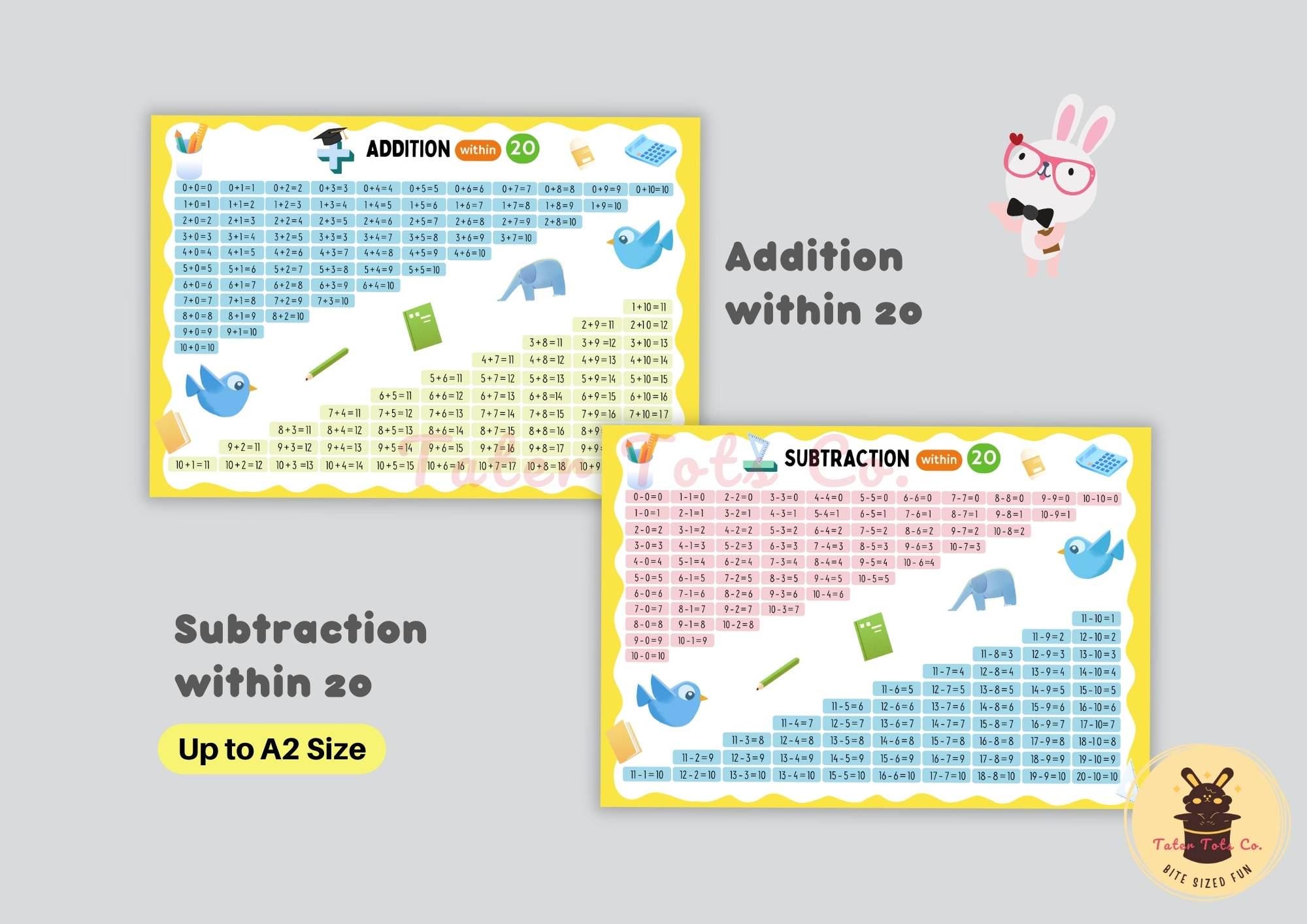 • Addition and Subtraction Numbers 1 to 20 (2 pages) up to A2 size
