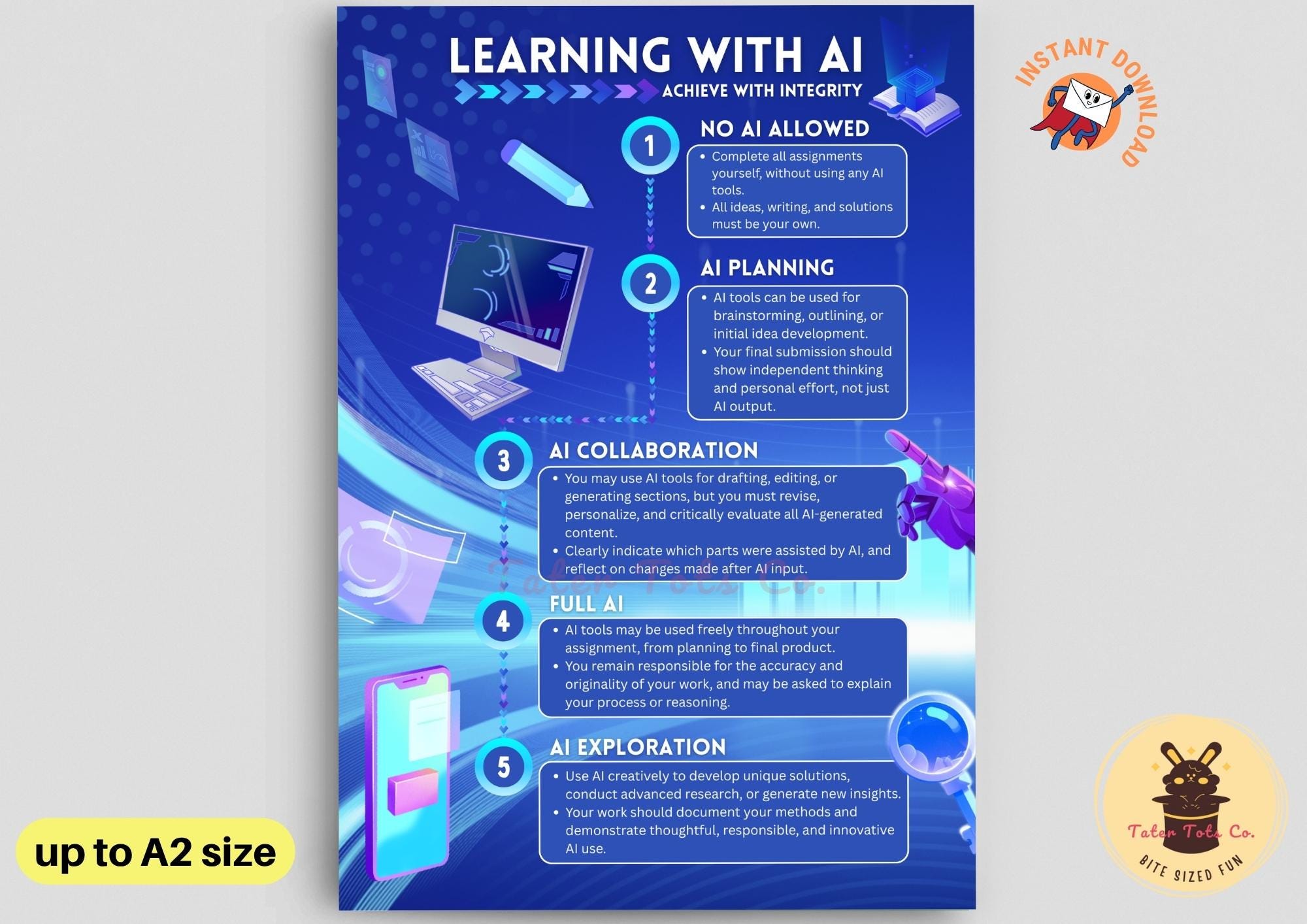 Suitable for classroom walls, digital citizenship lessons, or at-home learning, this infographic is a fun way to help students become smart, safe, and confident digital explorers. Instantly download, access, and print—make learning about AI and internet safety exciting and easy!