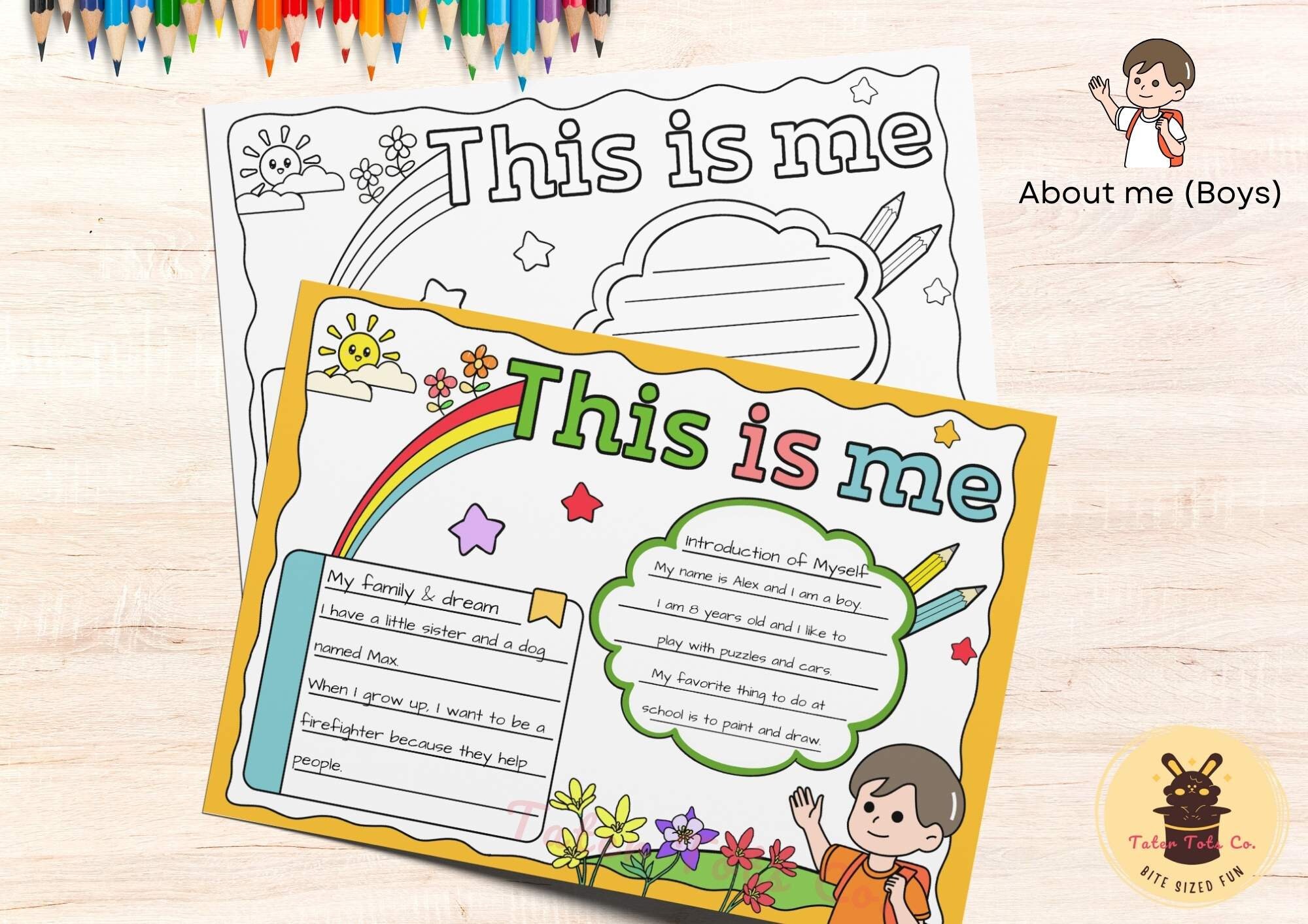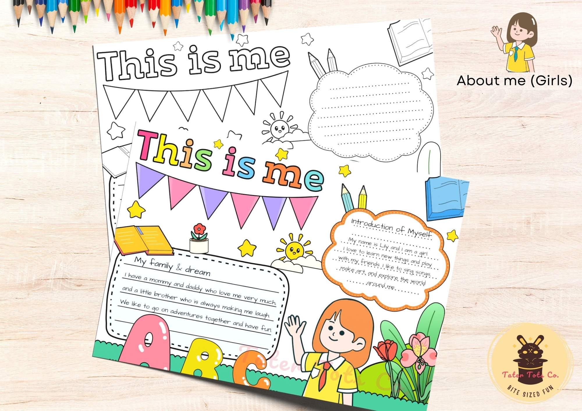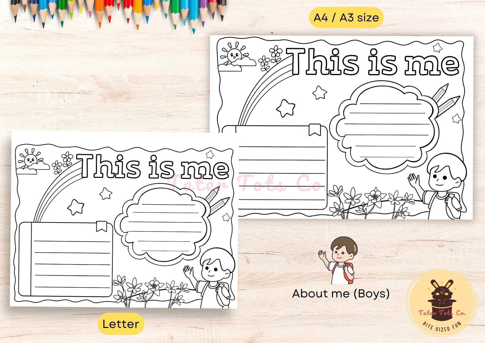 All About Me Colorable Poster Blank Template Bundle - Girl and Boy Self Introduction and Expression Instant Download