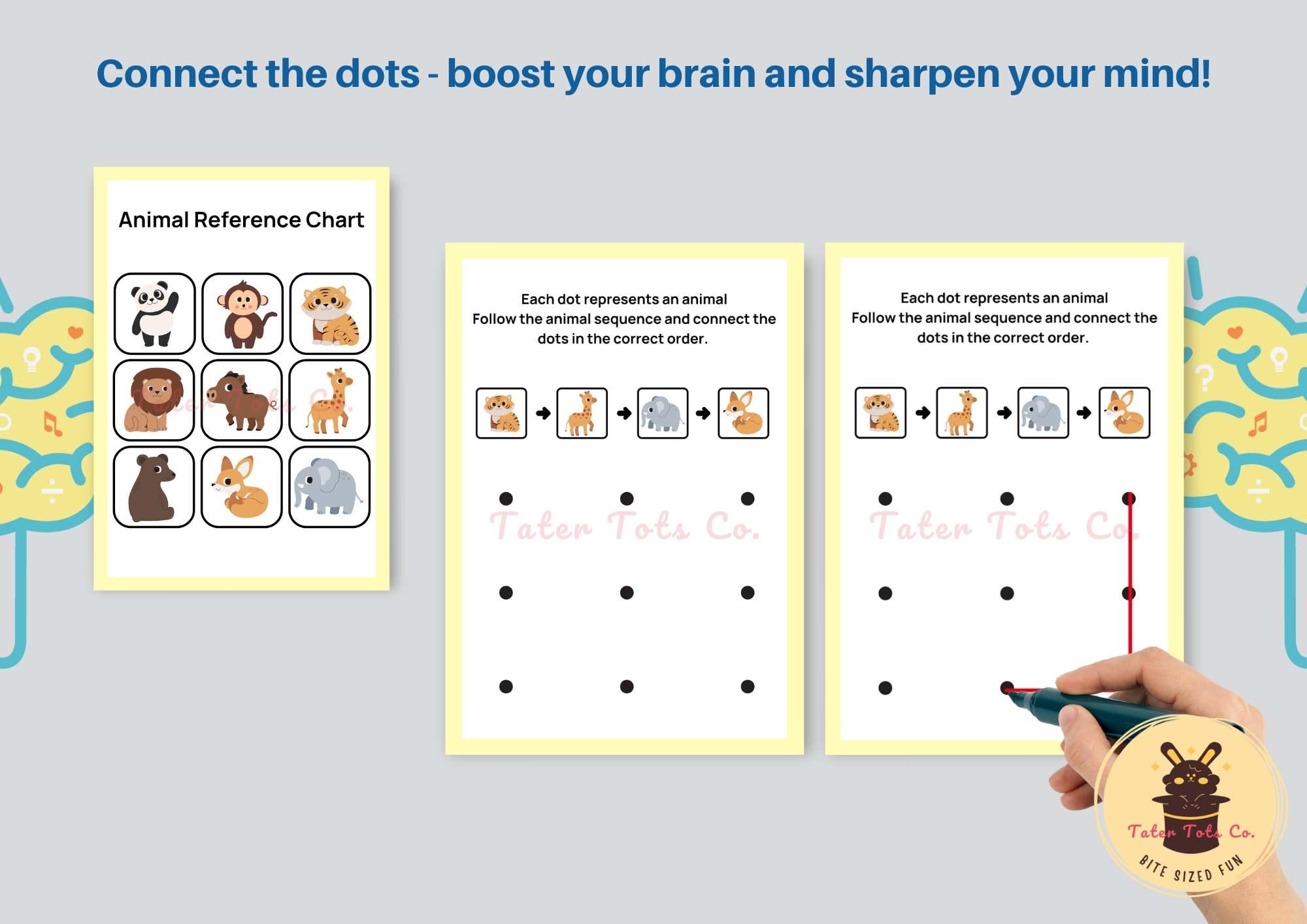 Engage your child's mind with these fun and educational Animal Dot to Dot Puzzles! This printable PDF download includes 18 unique puzzles that help develop sequencing skills, hand-eye coordination, and problem-solving abilities. Perfect for preschool, kindergarten, or homeschool activities.