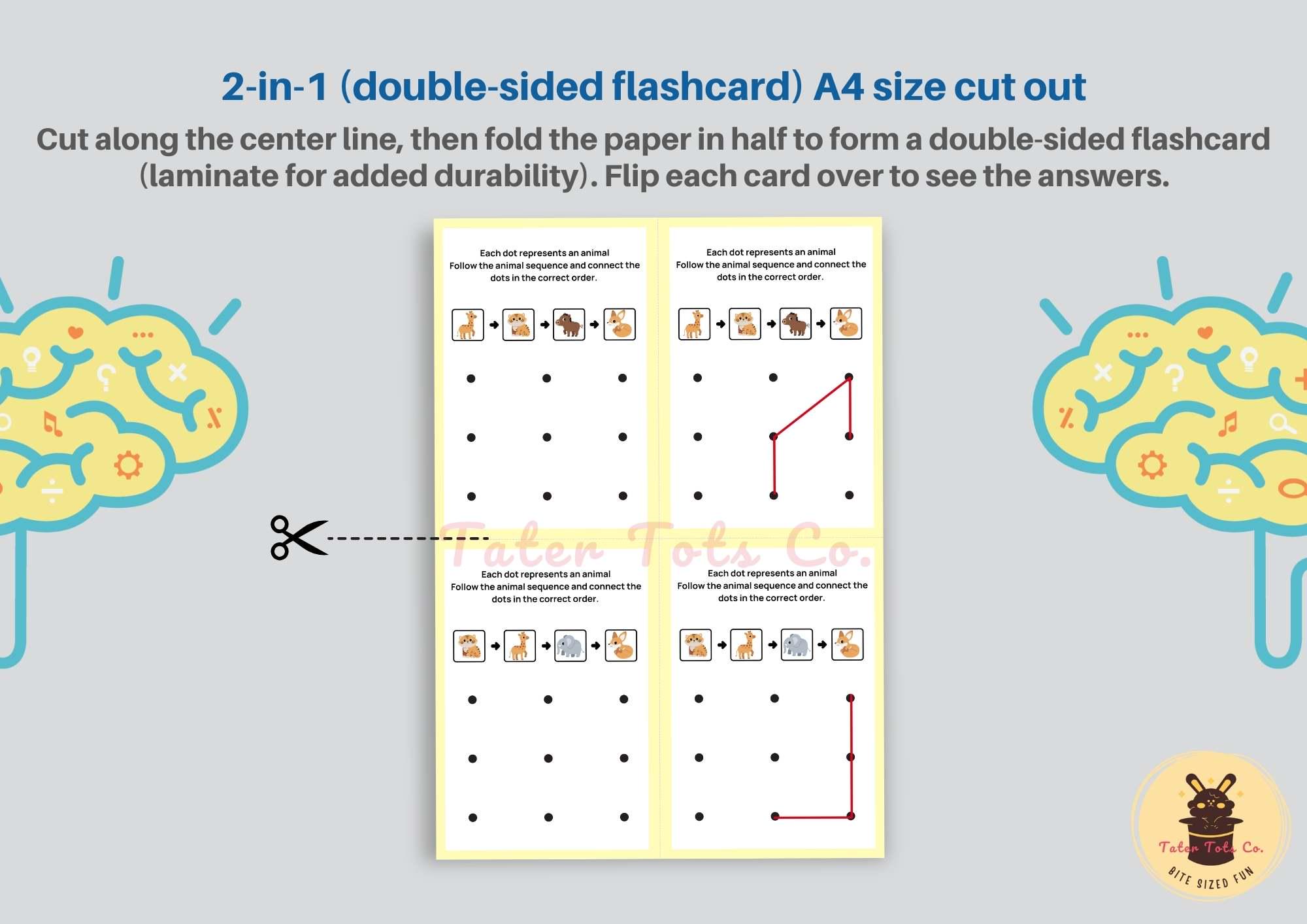 • Animal dot-to-dot puzzle (8 pages - 2-in-1 double-side flashcard A4 size cut out)