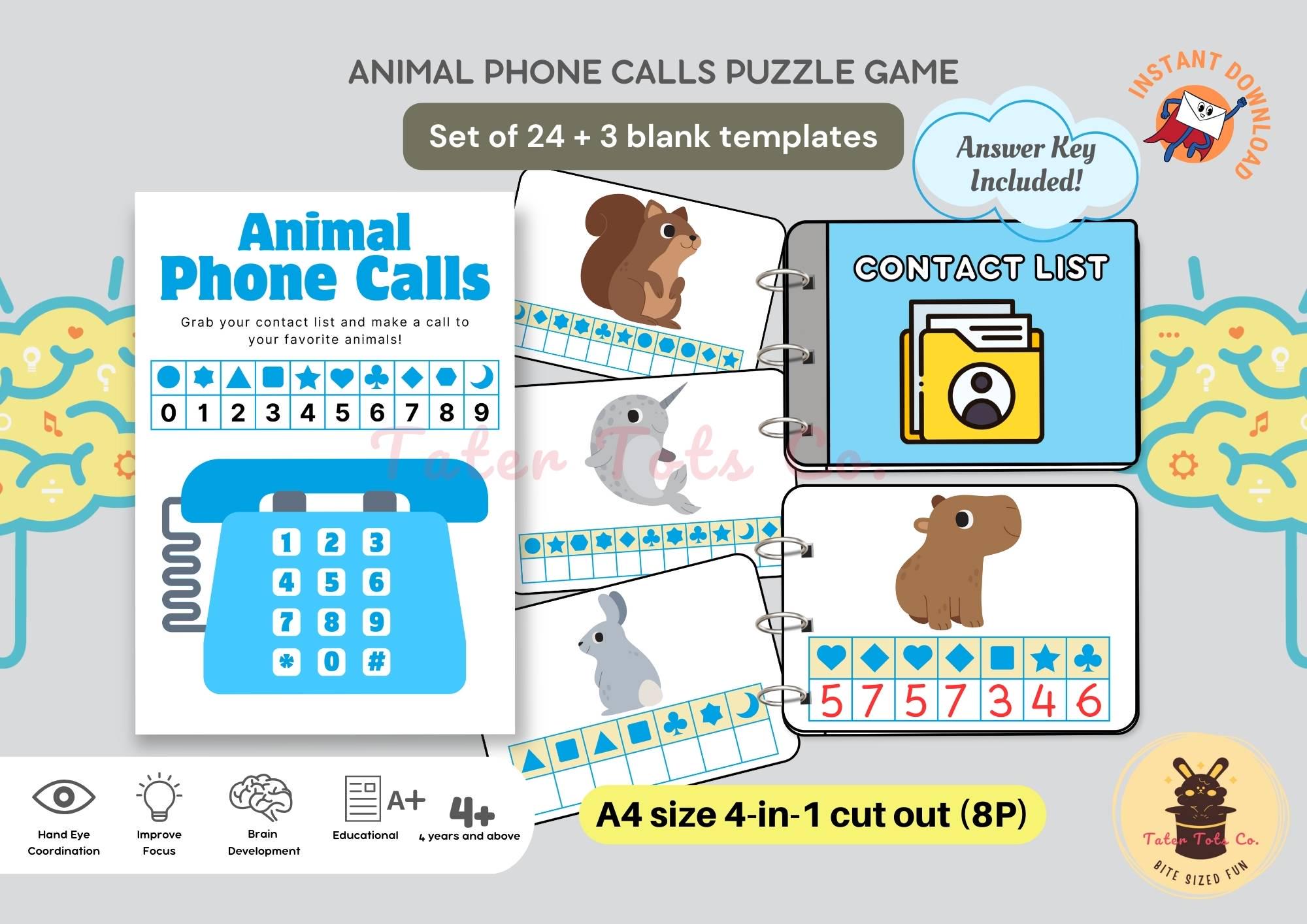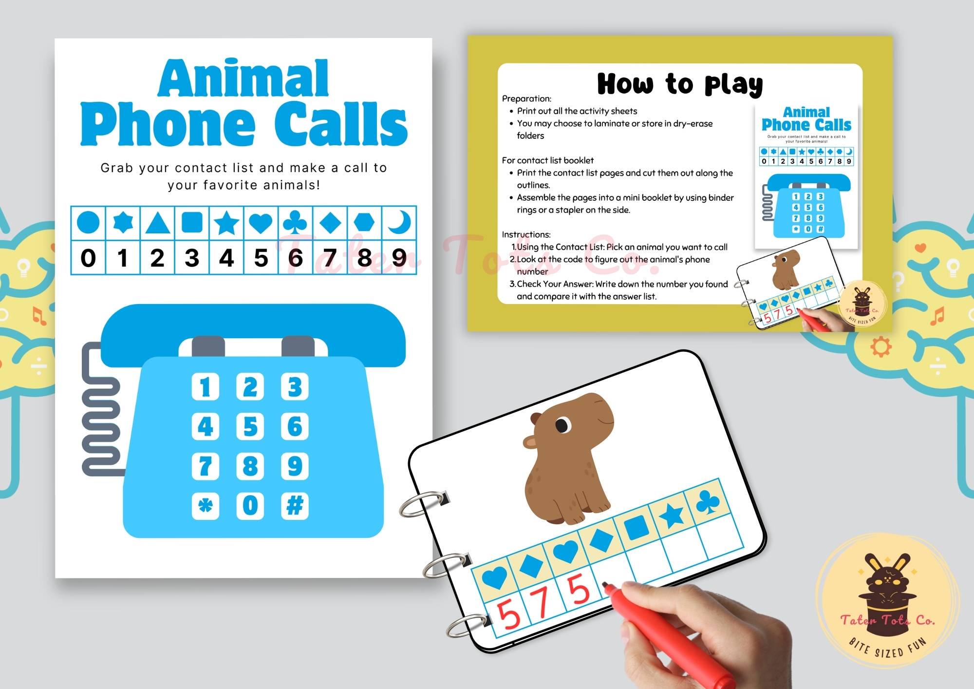 Animal Phone Calls Puzzle Game: Decode Symbols (Instant Download PDF)