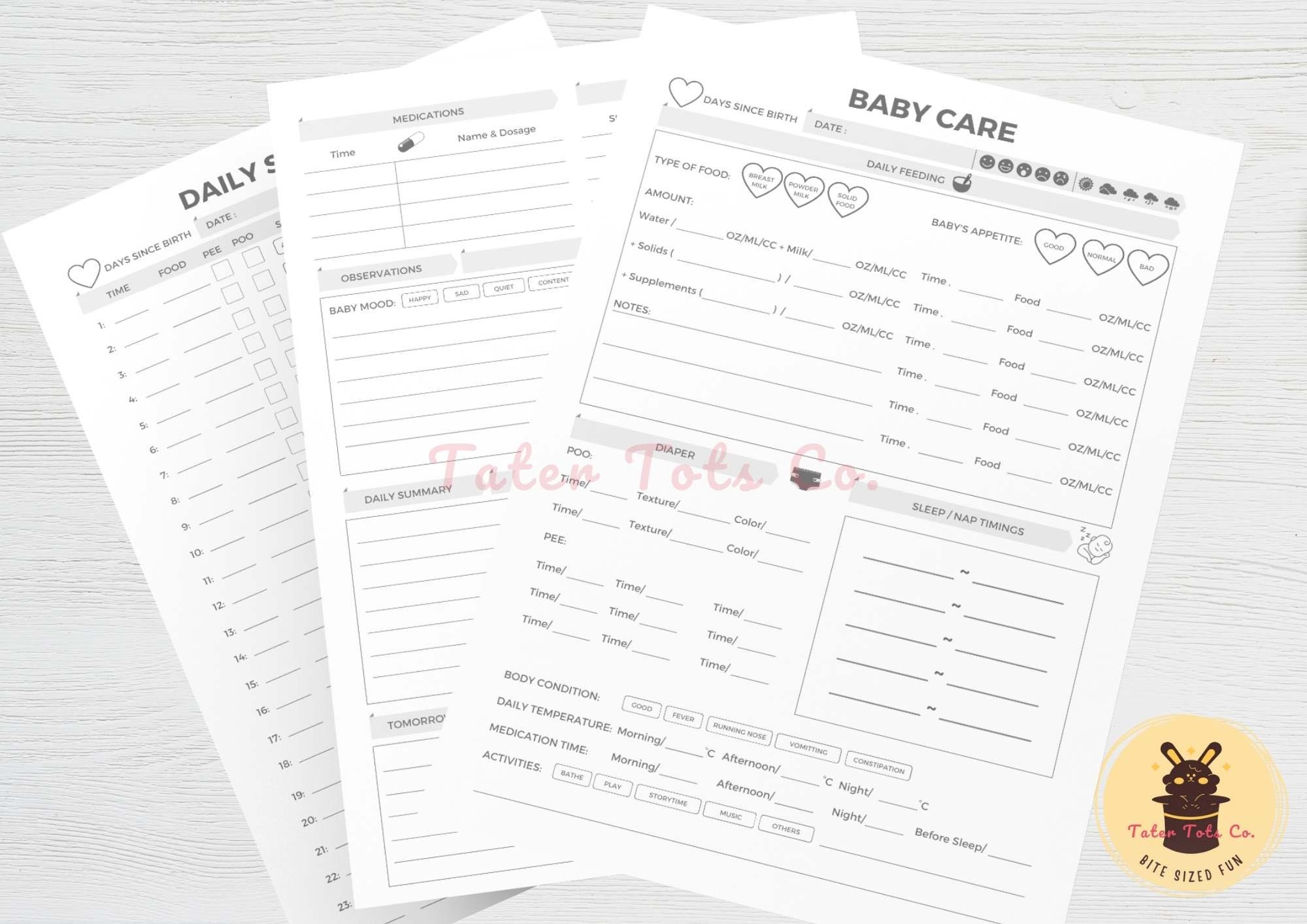 • Printable Baby Tracker Daily Check List Record Book (A4 and Letter)