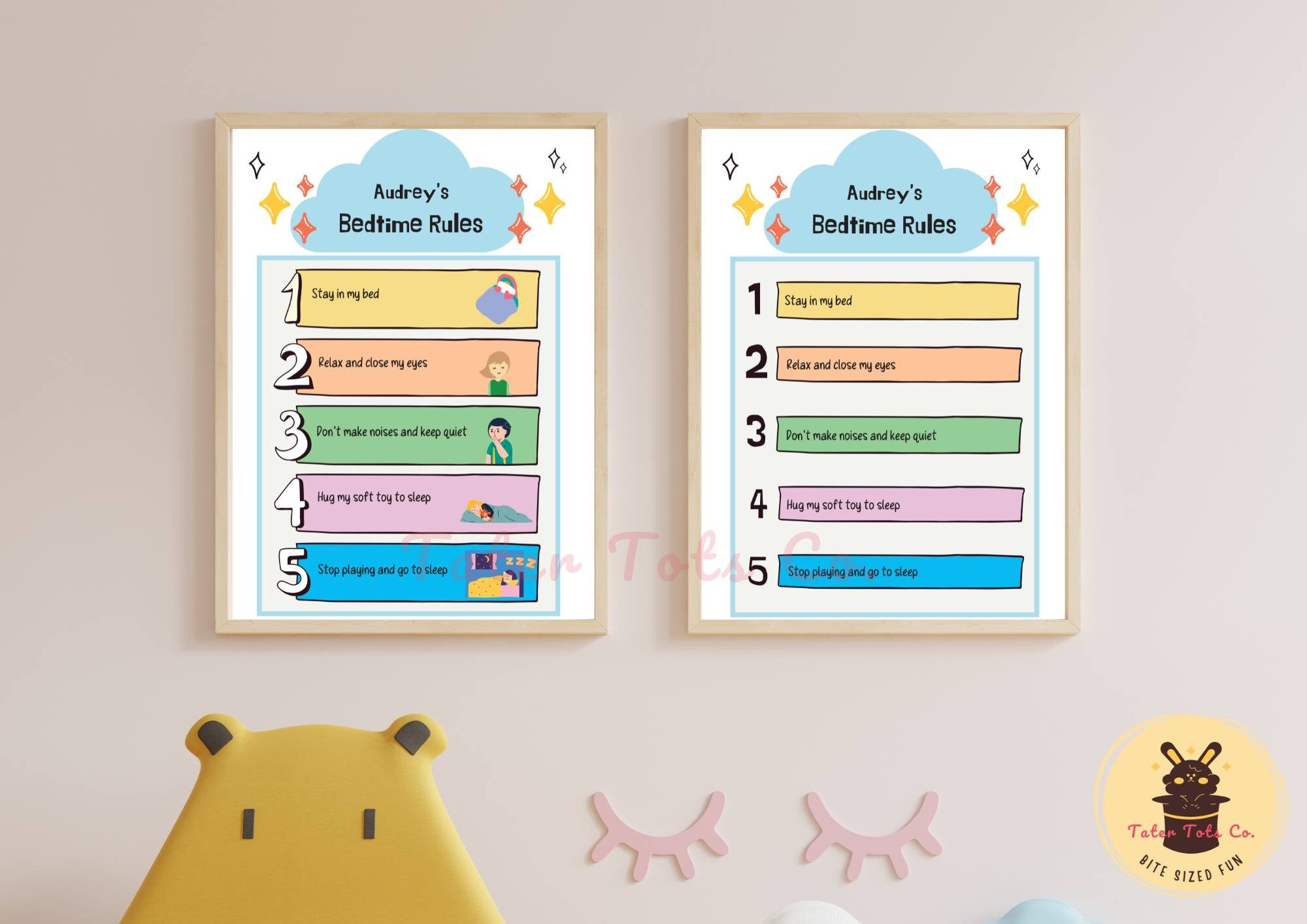 The rules encourage healthy sleep habits, such as closing eyes in bed and staying quiet. And with an instant download in PDF format, you can have it printed and hung up in minutes!