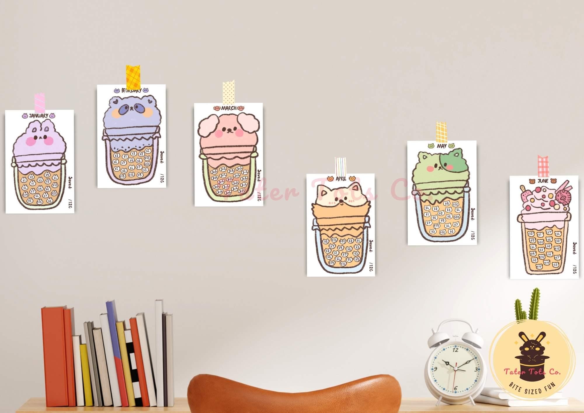 Our 12-month printable savings challenge offers a fun and adorable way to reach your financial goals, month by month. Each page features hand-drawn bubble tea animal illustrations that are just as sweet as boba and as motivating as a sip of your favorite milk tea.