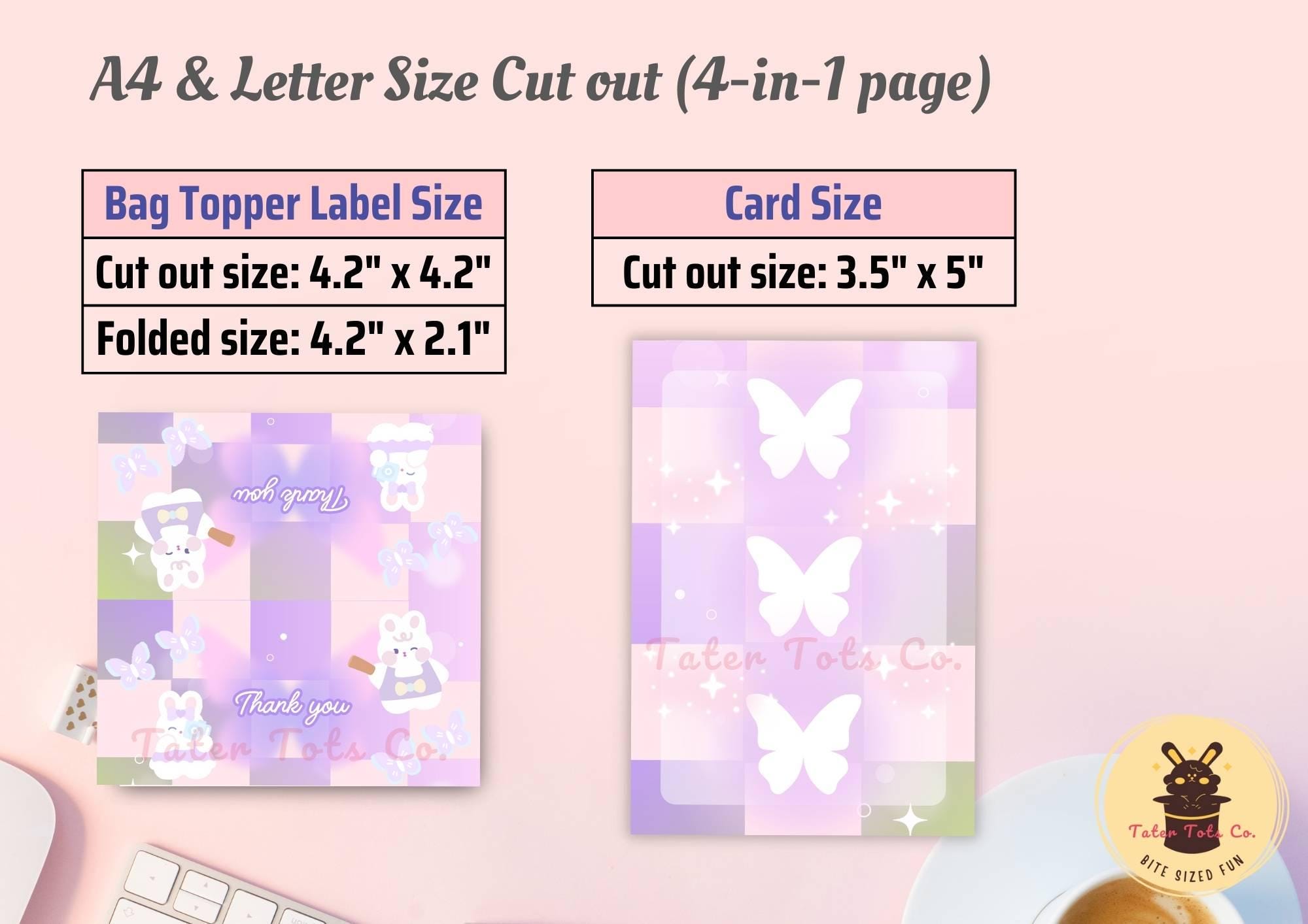 • Cute Bunny Butterfly Aura Treat Bag Topper and Card Bundle A4 and Letter size 4-in-1 page cutouts