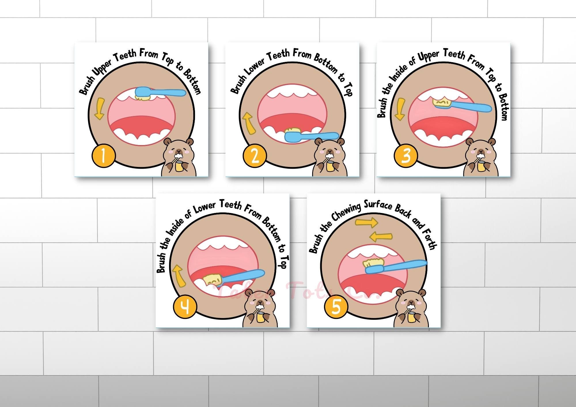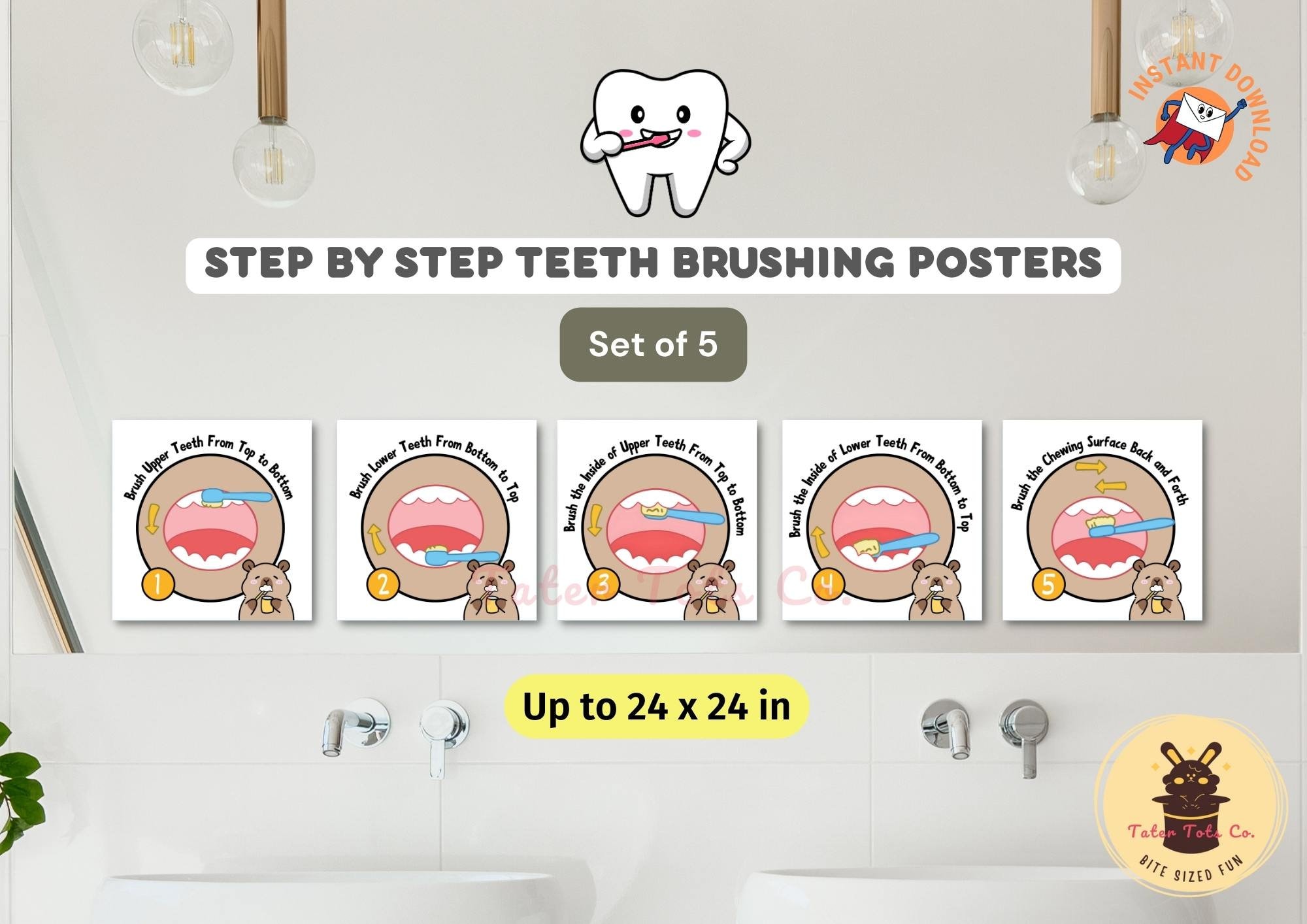 Brushing Teeth Poster: https://www.etsy.com/uk/listing/1267279357/brushing-teeth-poster-dental-hygiene