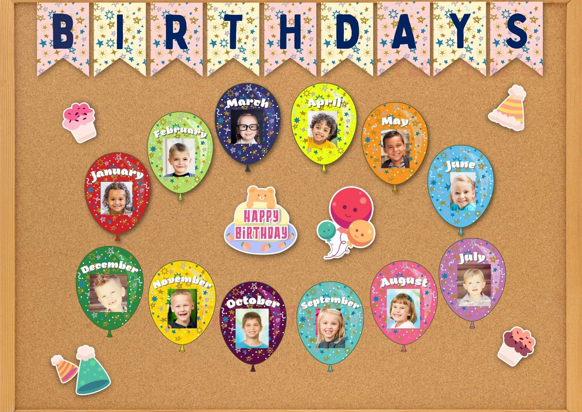 It makes a bright and colorful addition to your bulletin boards and wall displays. Using a birthday calendar is a great way to celebrate birthdays and help children learn the months of the year. Use the colorful balloons to display the list of kids who have their birthdays each month, using the editable name labels or their photos.