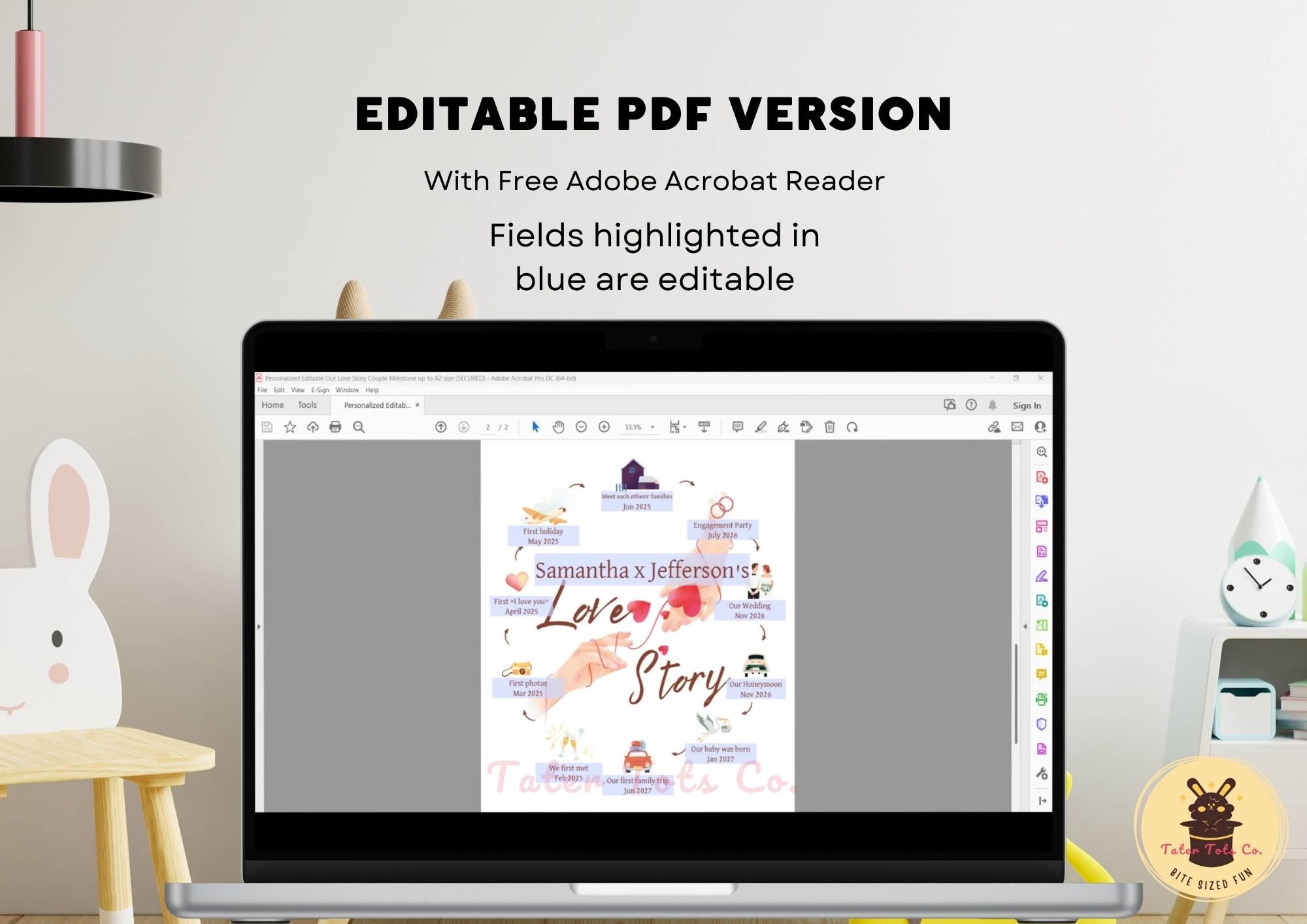 Couple's Love Story Milestone Moments: Anniversary/Valentine Gift Celebration - Instant Download Personalized Editable PDF