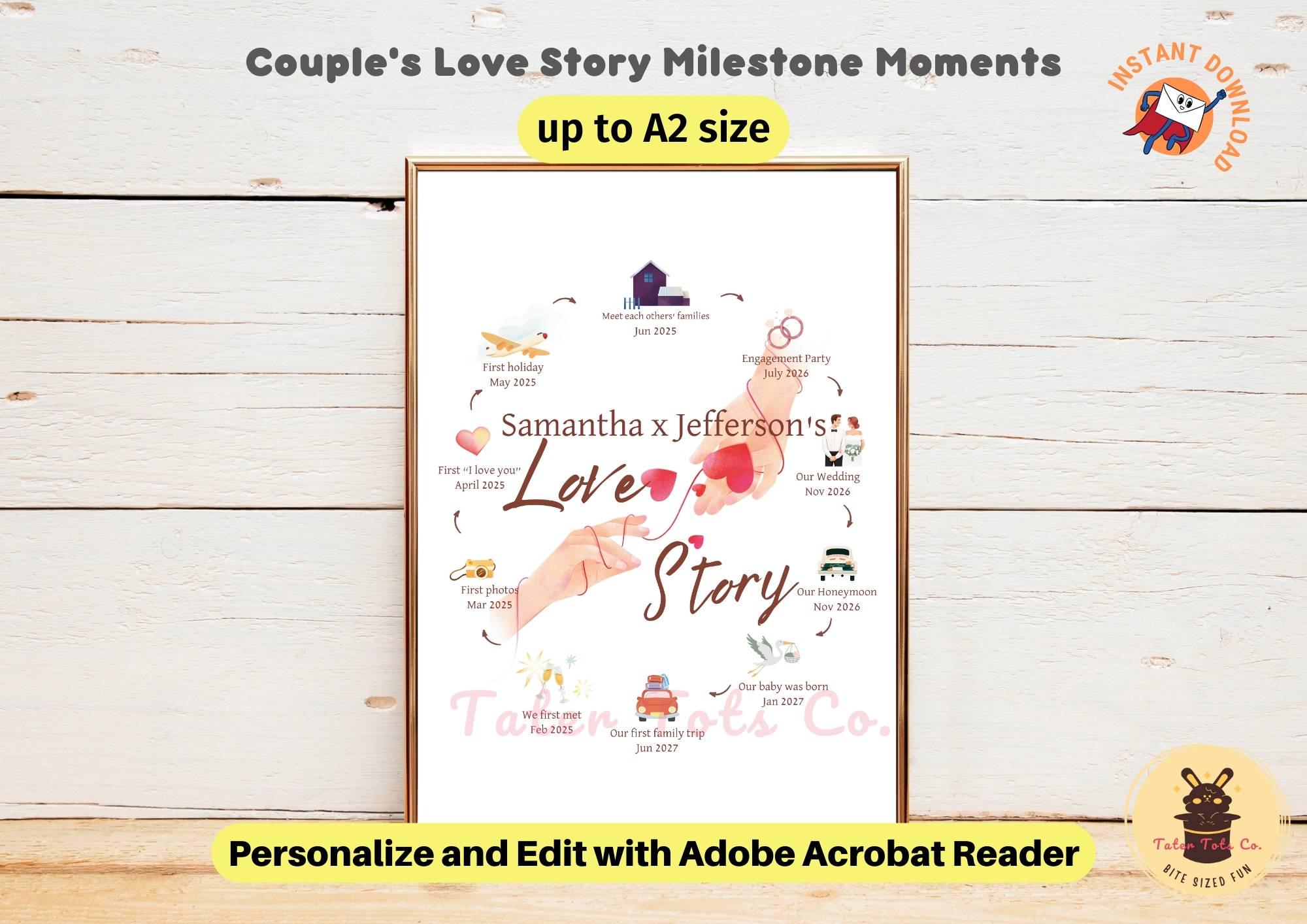 • Editable Couple's Love Story Milestone Moments up to A2 size