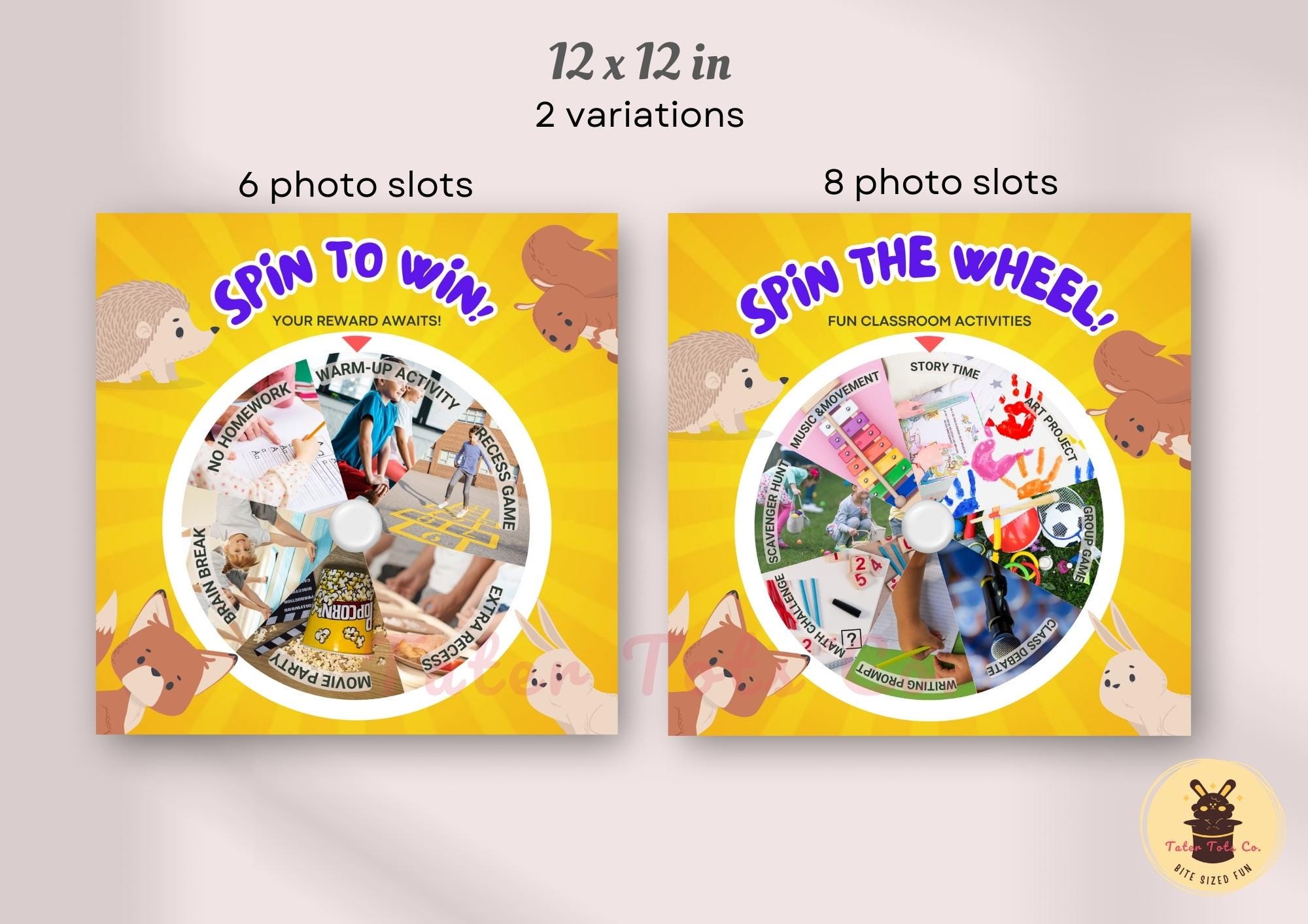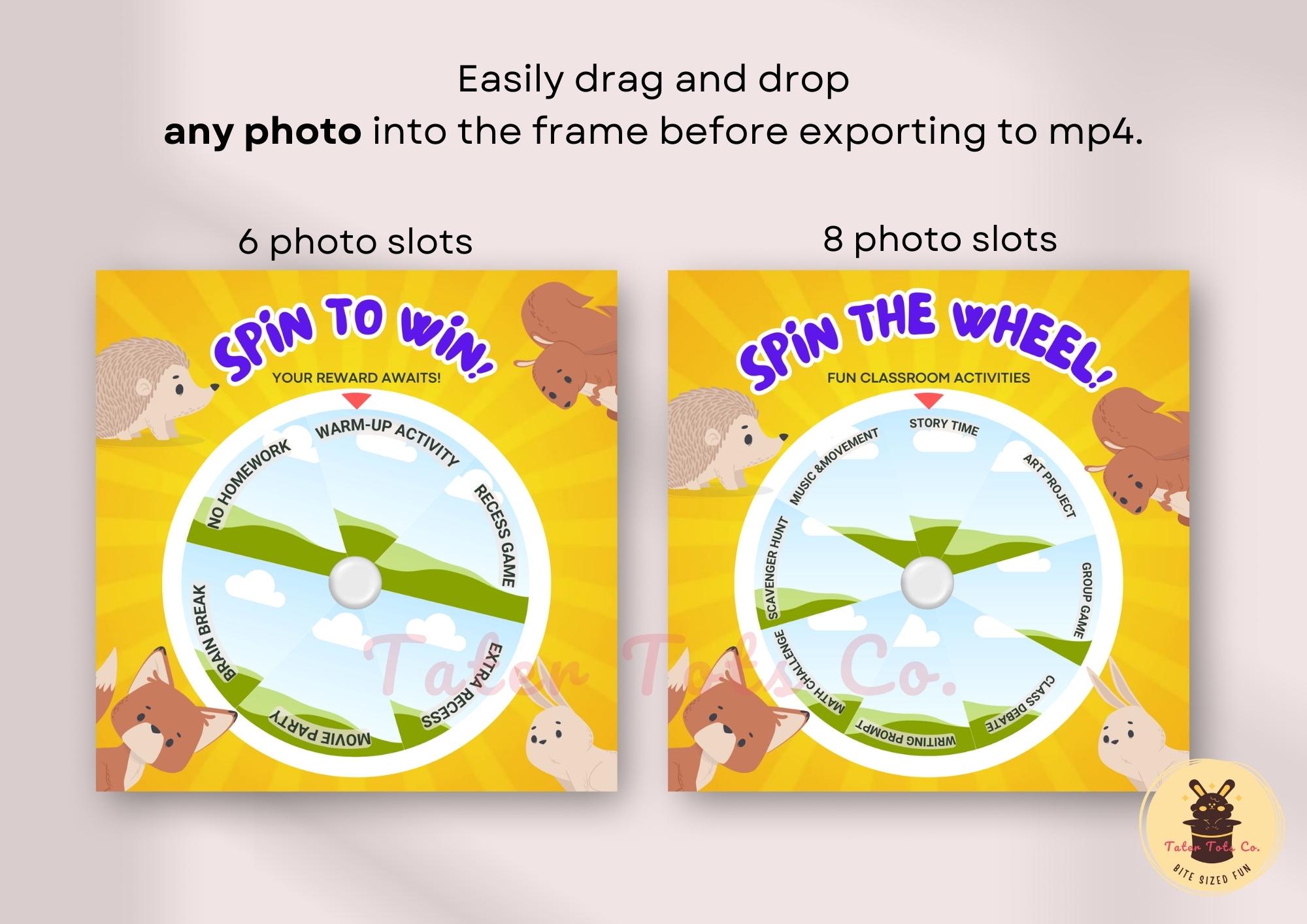 Custom Photo Digital Animated Spinner Wheel - 6 and 8 Slots Drag and Drop Easy and Quick Setup Editable Canva Template Instant Access