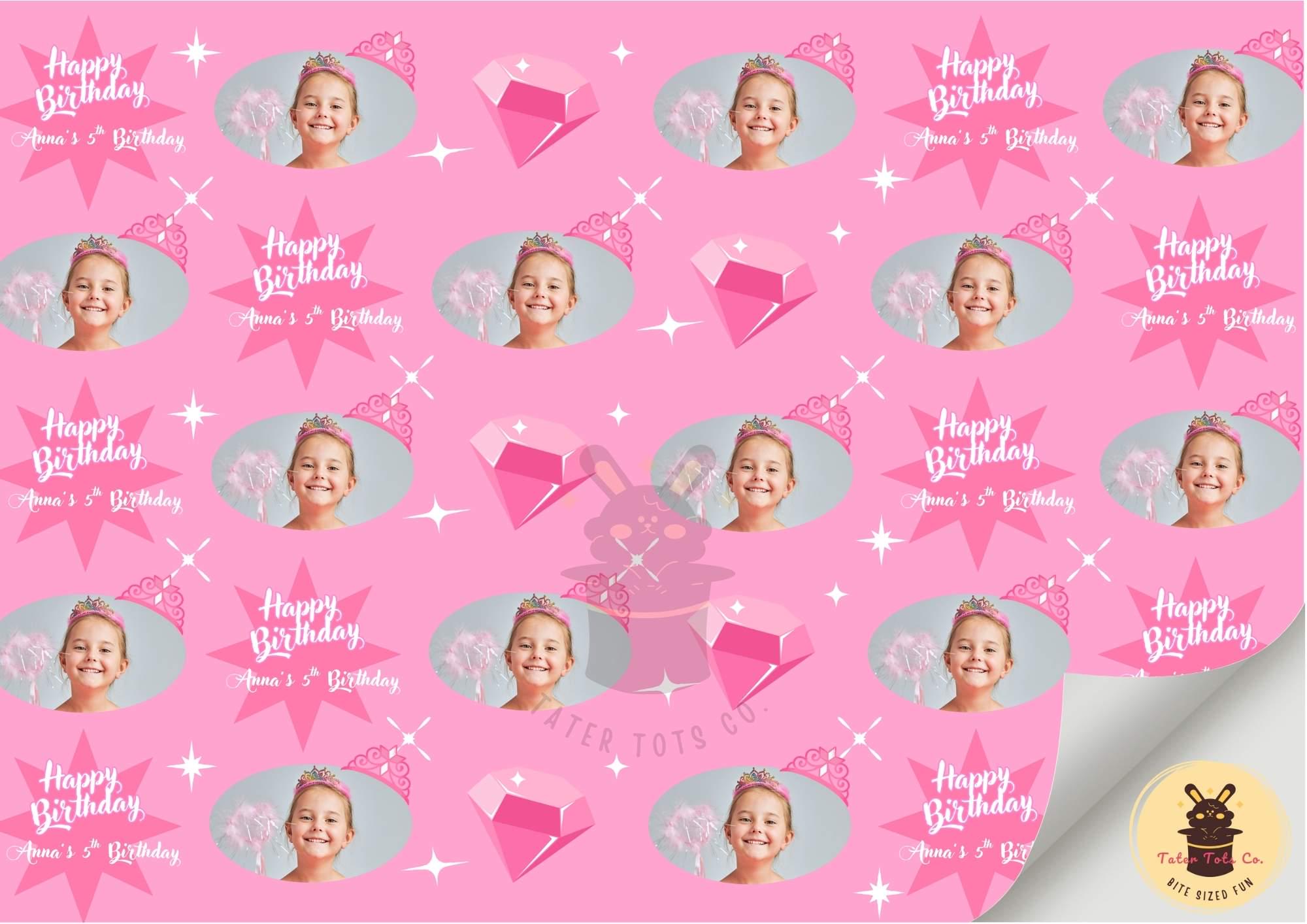 Custom Photo Kid Birthday Gift Wrap Party Supplies | Digital Paper Canva Template | Easy Drag and Drop Frames | Instant Access