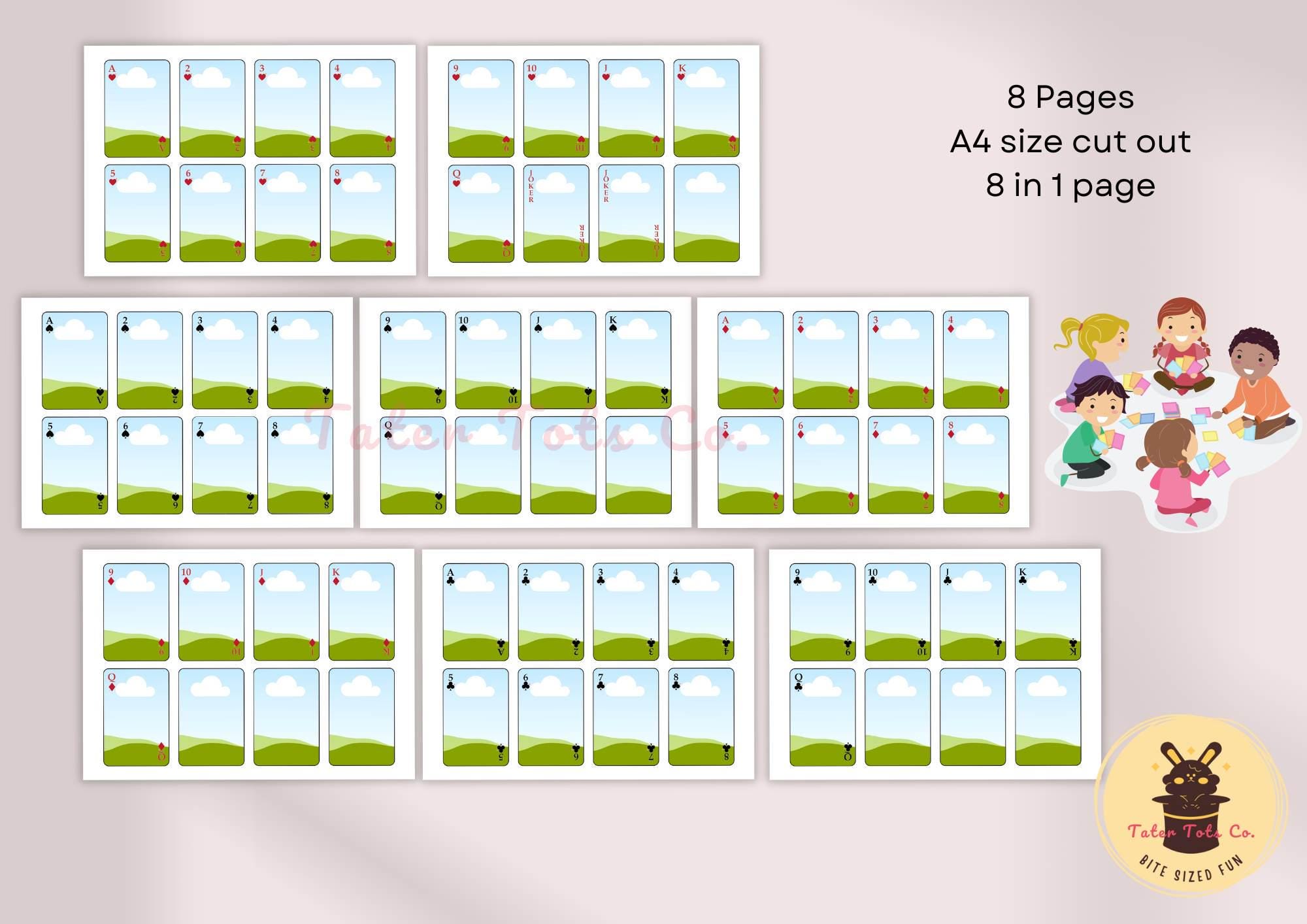 The card deck is a standard 52 deck + 2 joker cards with 2 variations (border and no border around the card).