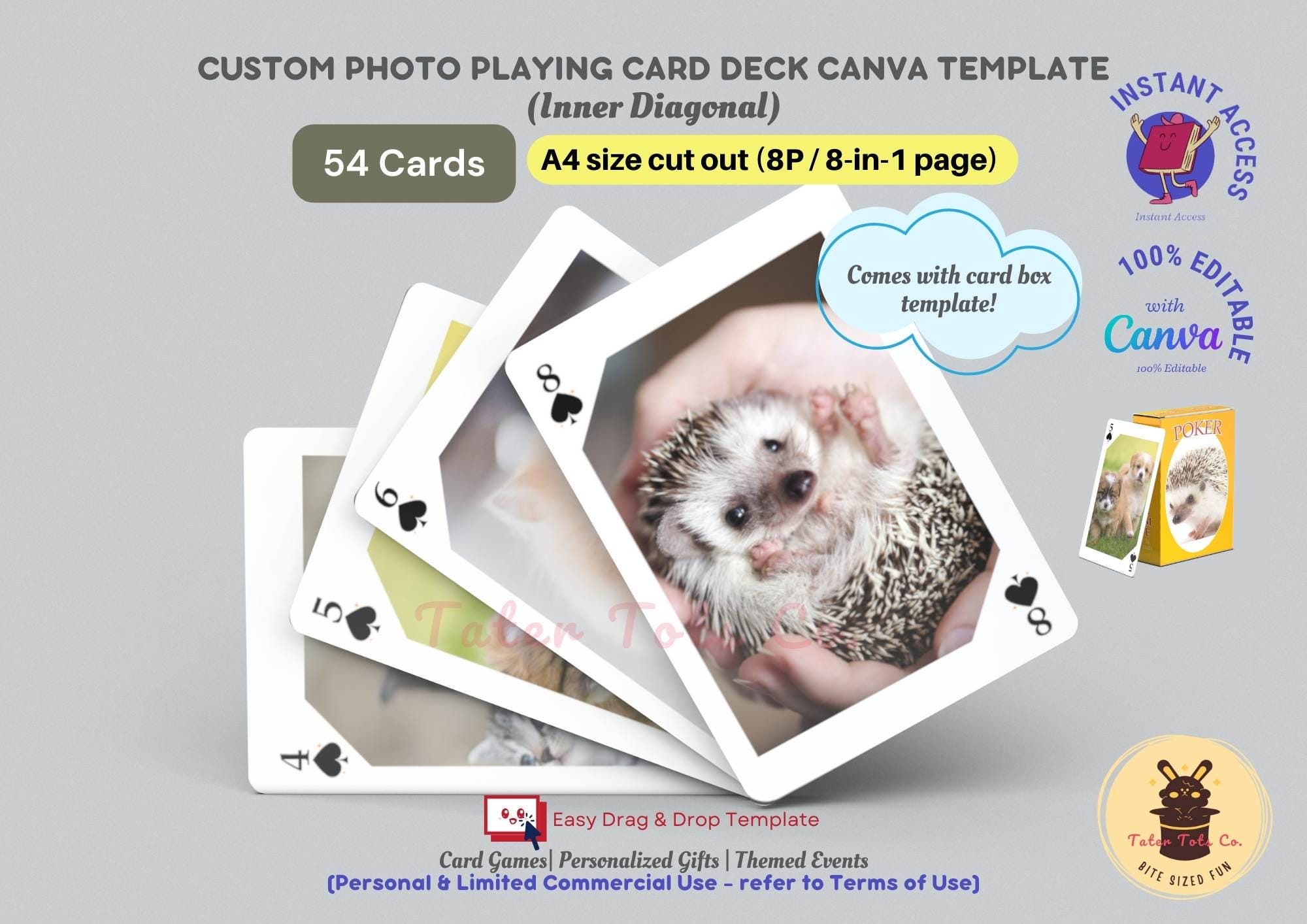 Custom Photo Playing Cards with Easy Drag and Drop Background and Inner Image Frames Canva Template with Instant Access