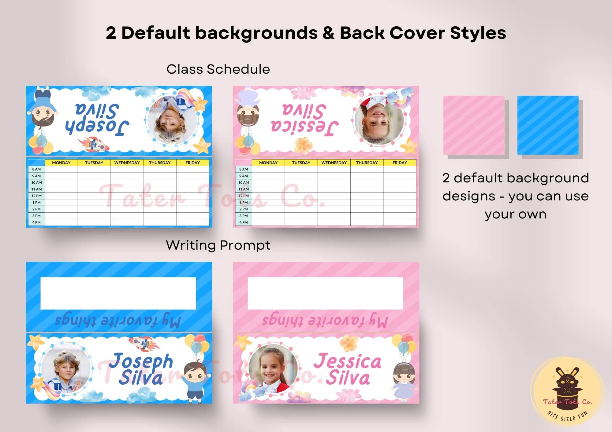 ✅ Pre-designed backgrounds in two styles (blue or pink), or you can upload your image to the background frame