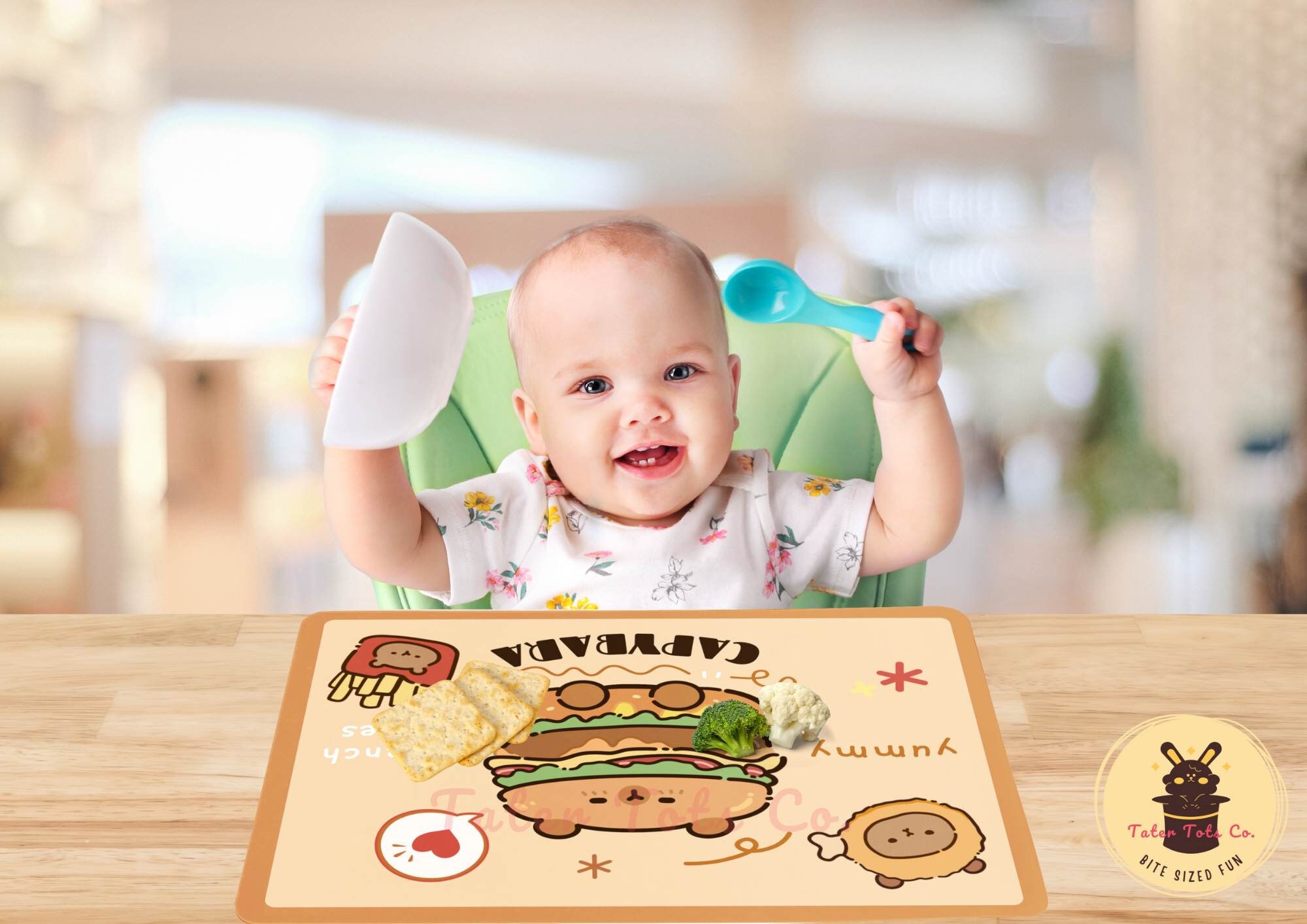 Brighten your dining experience with our cute hand-drawn Capybara Burger Placemat design! Featuring a playful illustration of a juicy capybara burger alongside fast food favorites like fried chicken and French fries, this placemat adds a touch of cuteness to your table setting.