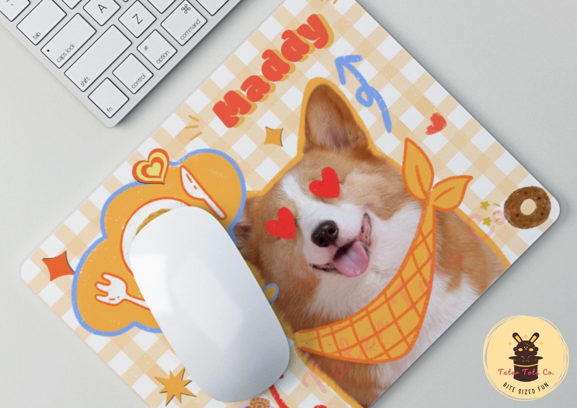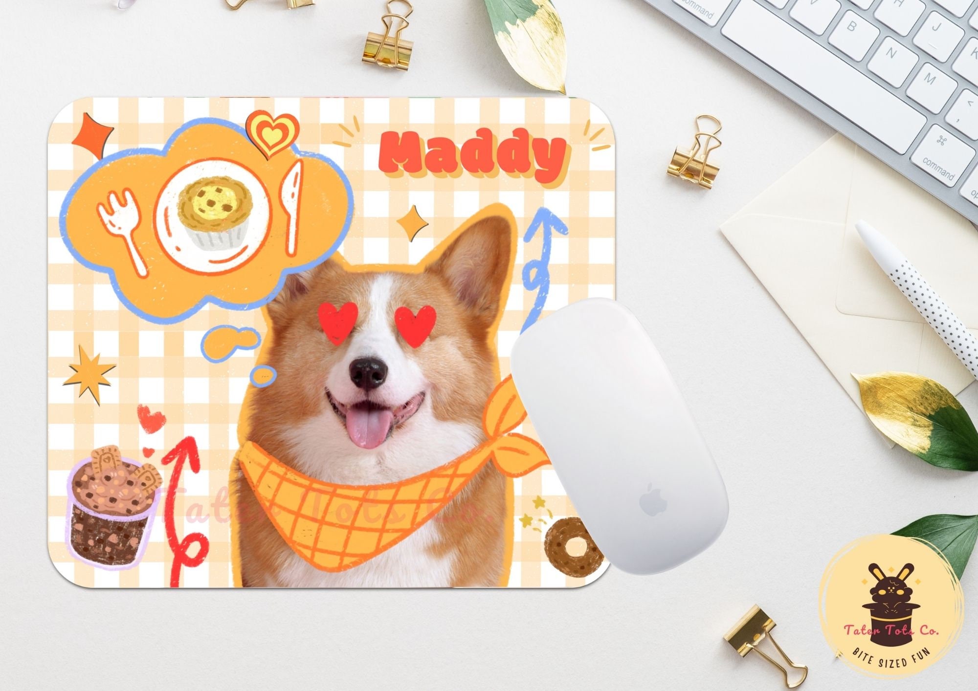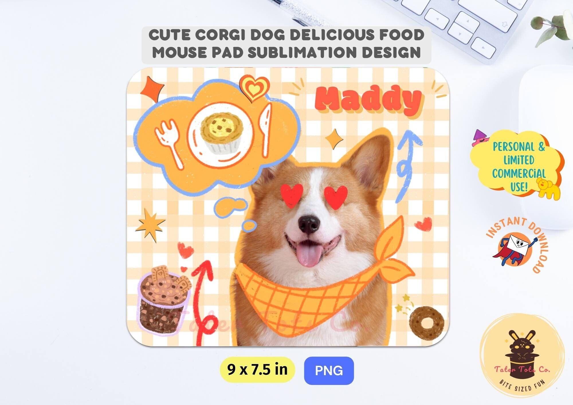 Cute Corgi Dog and Delicious Food Mouse Pad Sublimation Design PNG Mouse Pad Sublimation Design Instant Download