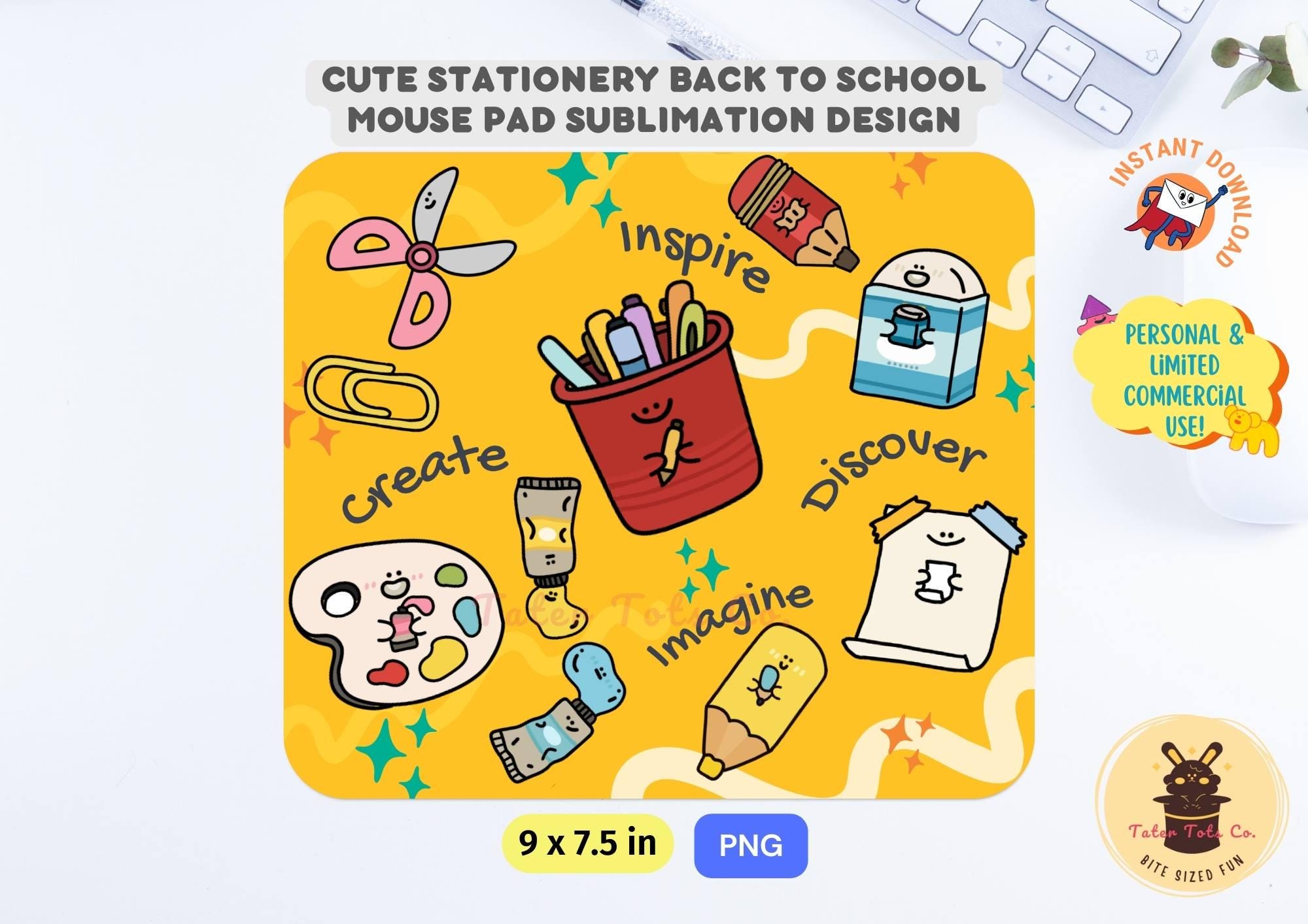 Cute Hand Drawn Doodle Stationery Back to School Mouse Pad Sublimation Design | Teacher Student Desk Accessory Instant Download PNG
