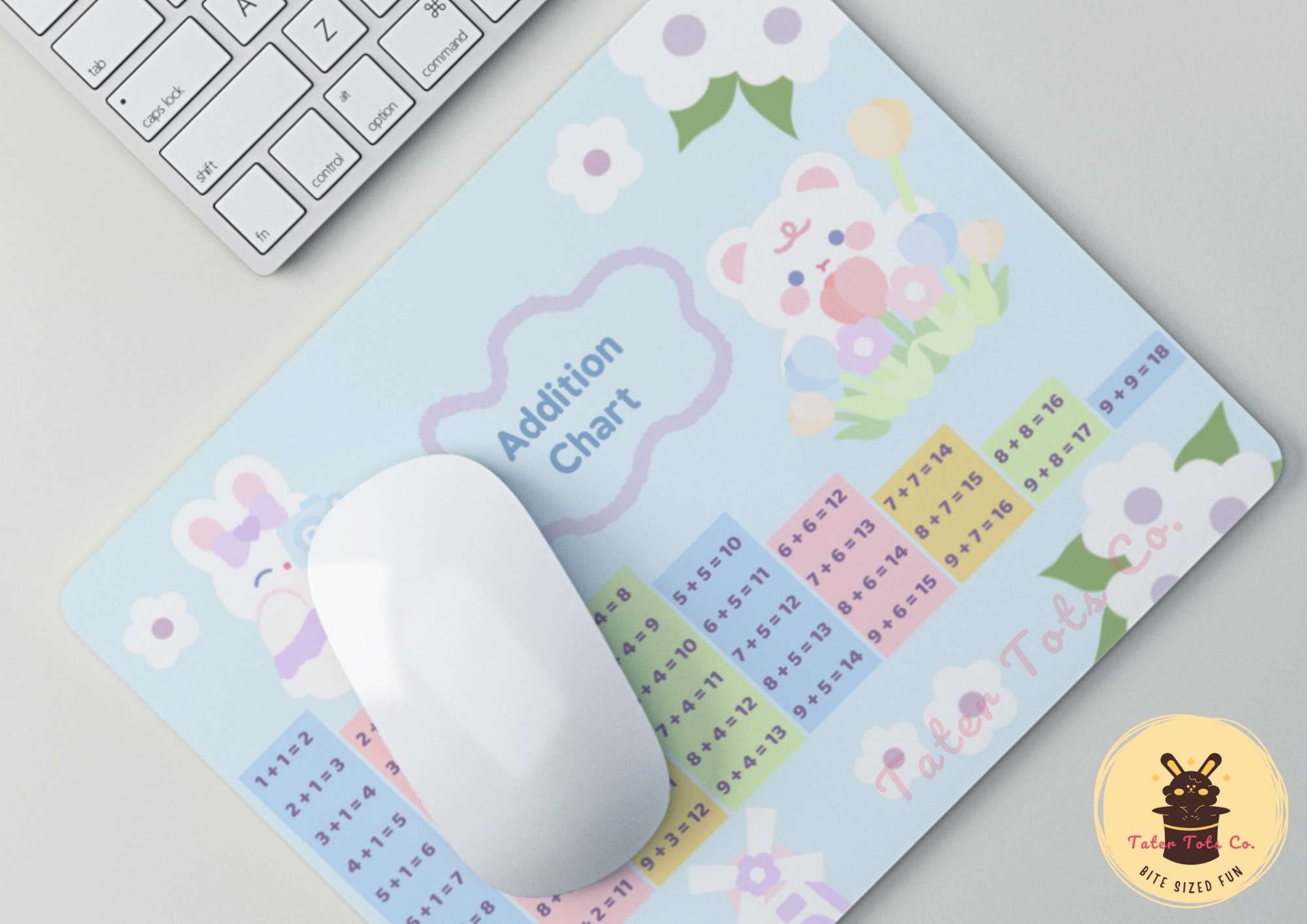 Our cute and informative springtime bunny and bear mousepad design is suitable for kids who need a little extra motivation to tackle their math homework.