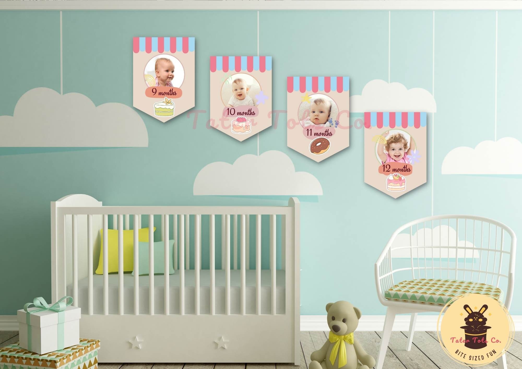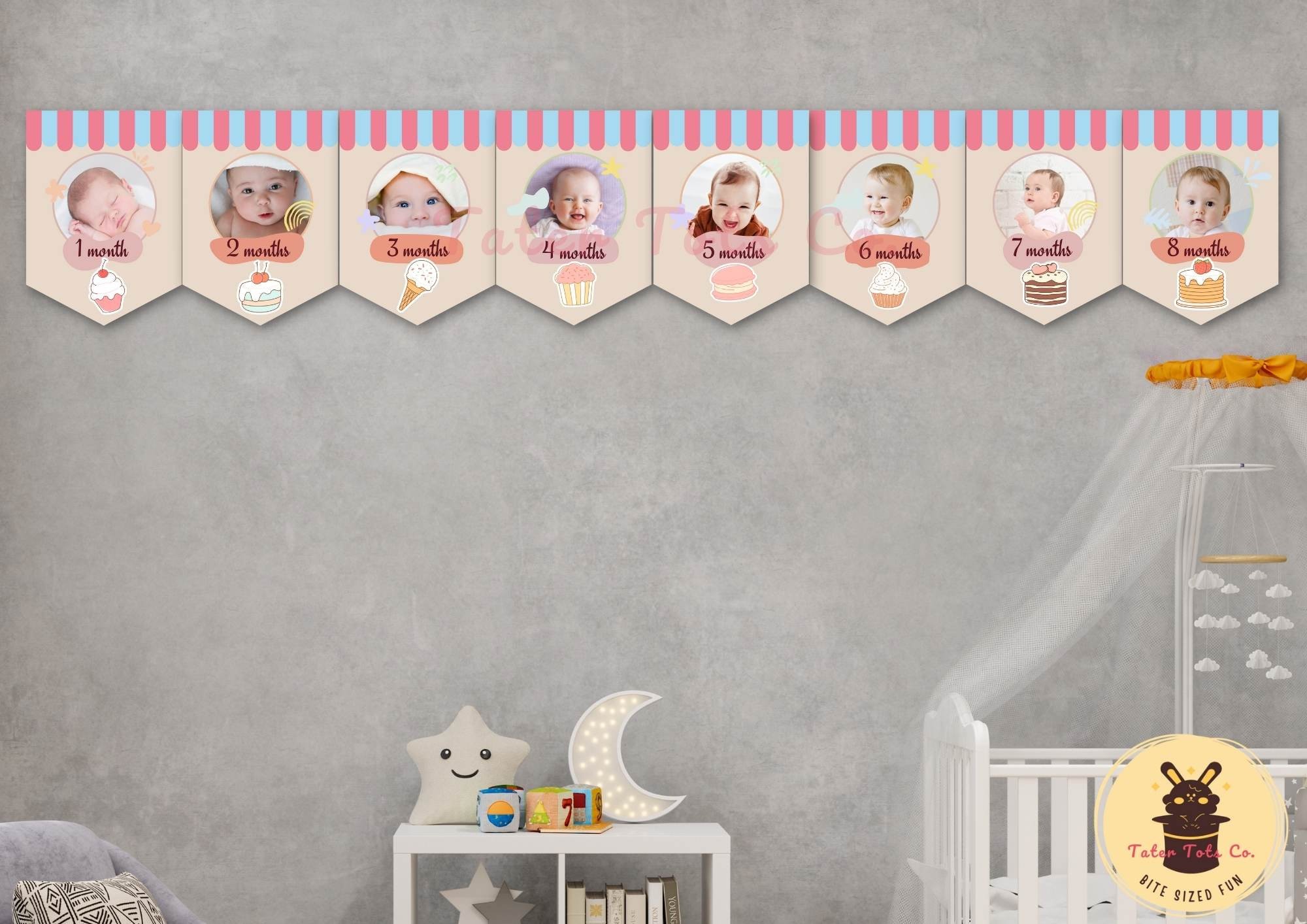 Cute Sweets Dessert Ice Cream Shop Monthly Baby Milestone Bunting Editable Canva Template | Instant Access