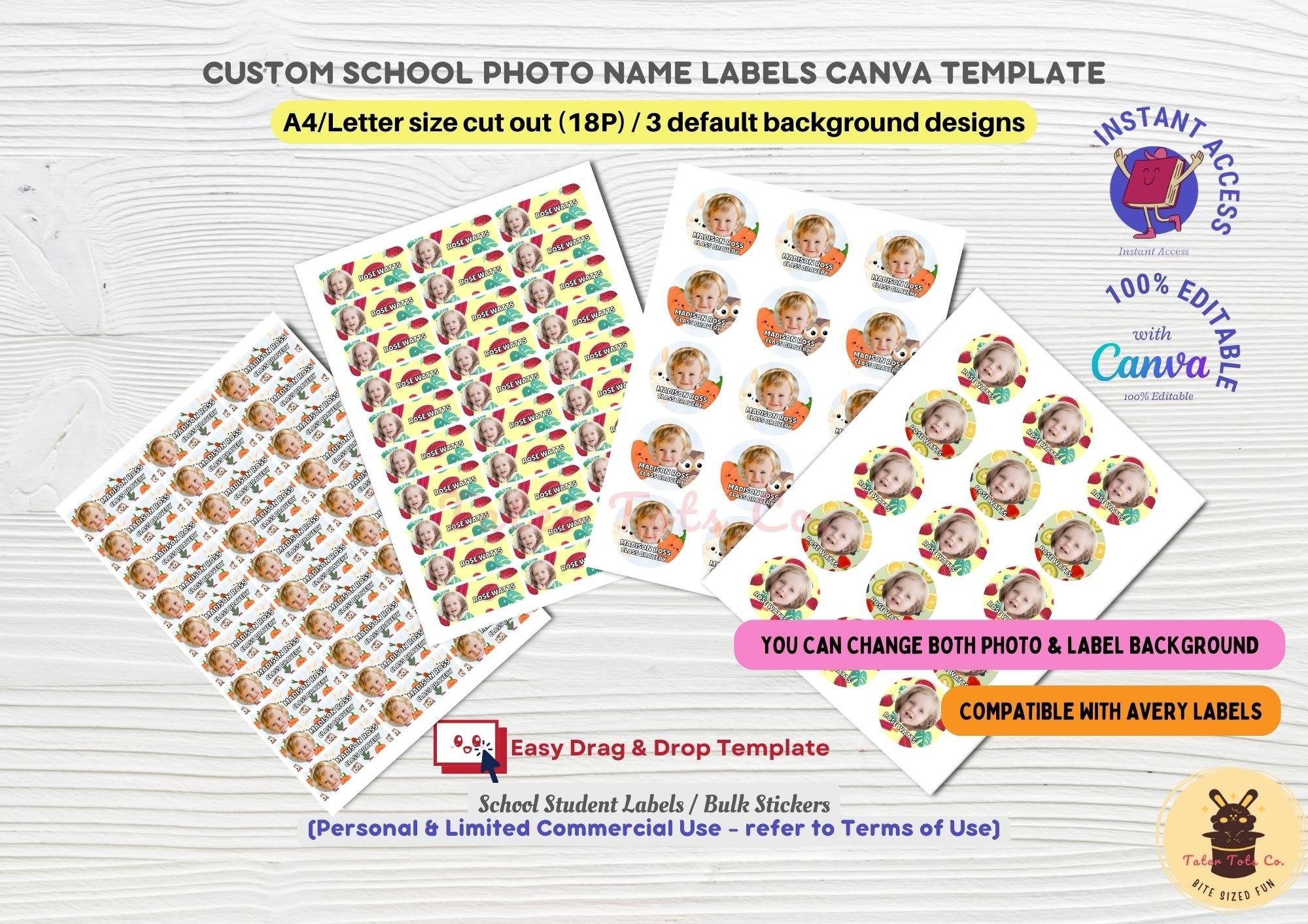 DIY Custom School Photo Name Label Bulk Stickers Canva Frame with Avery Label Templates - Drag and Drop or Duplicate | Instant Access