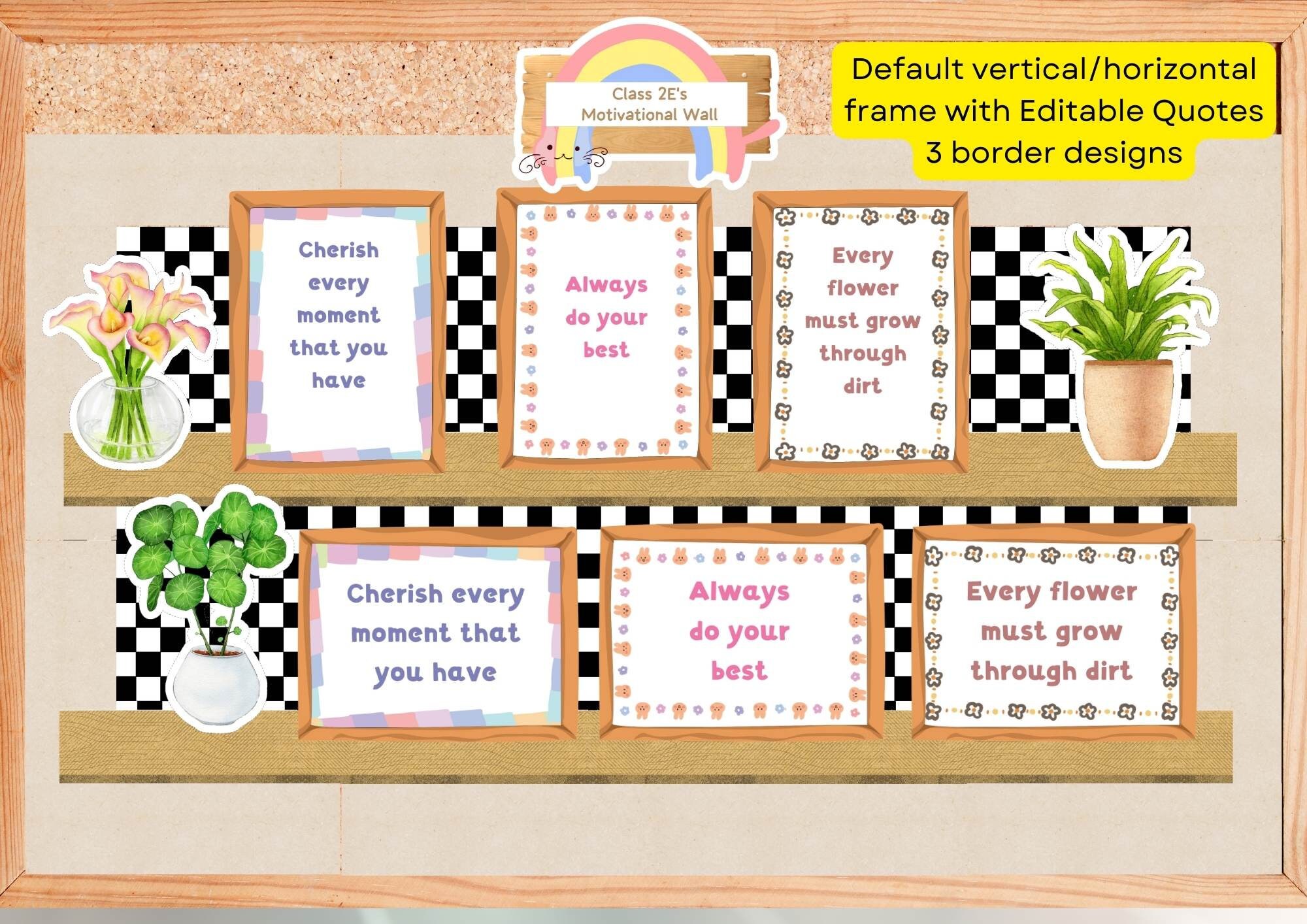 DIY Decorative Motivational Shelf Classroom Decor Pack with Editable Label Quotes, Flower Pot and Wall Art Display Instant Download PDF