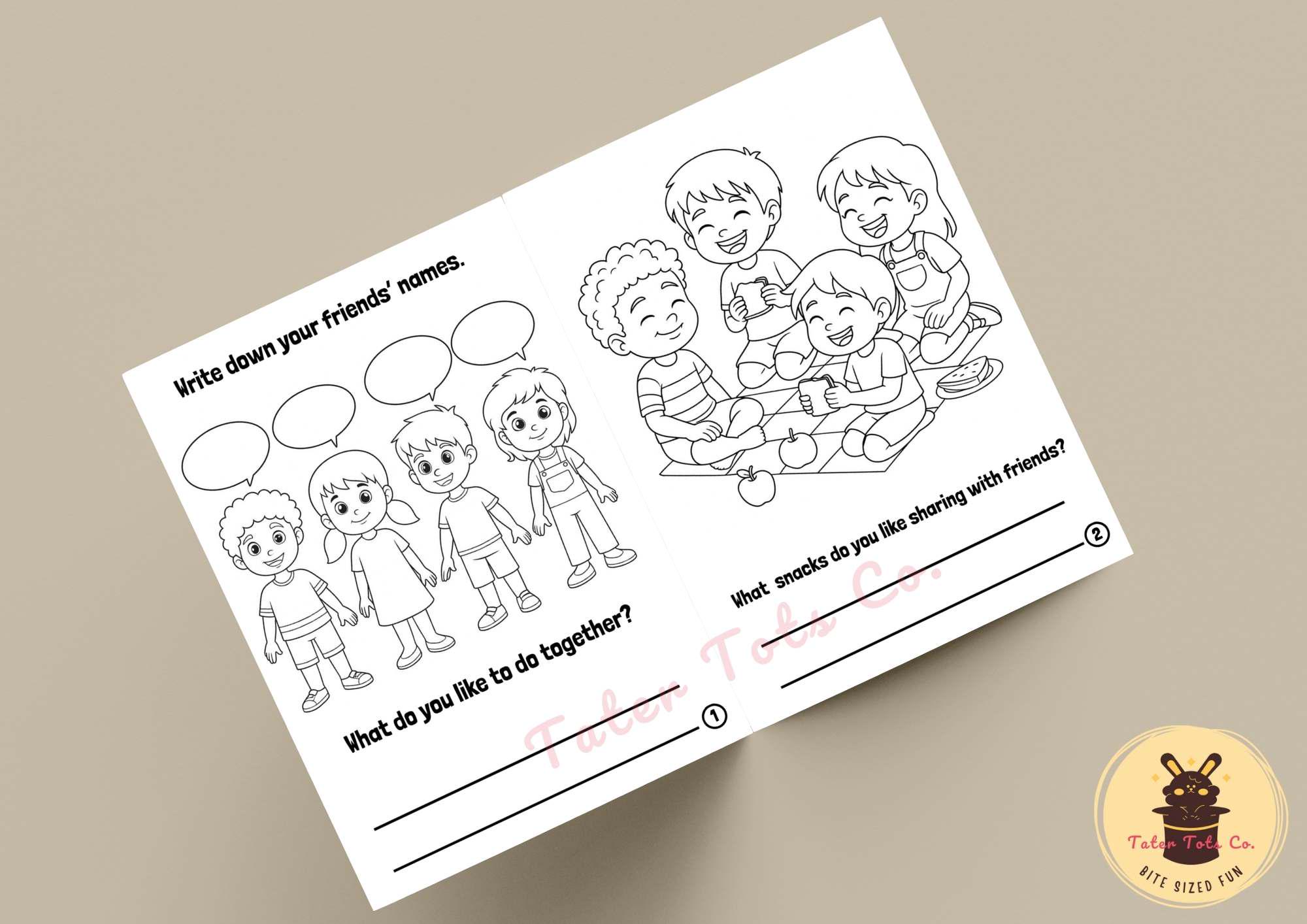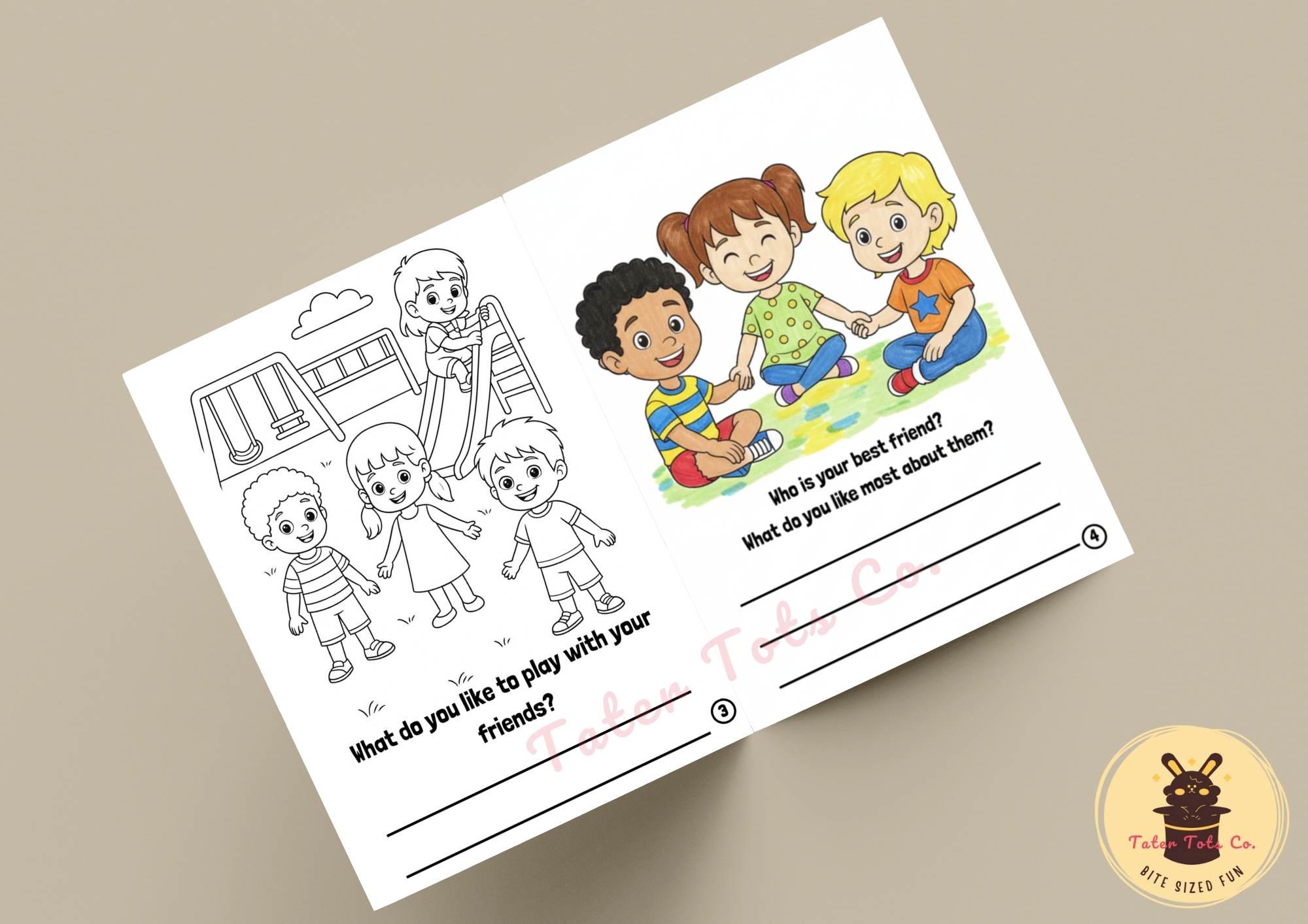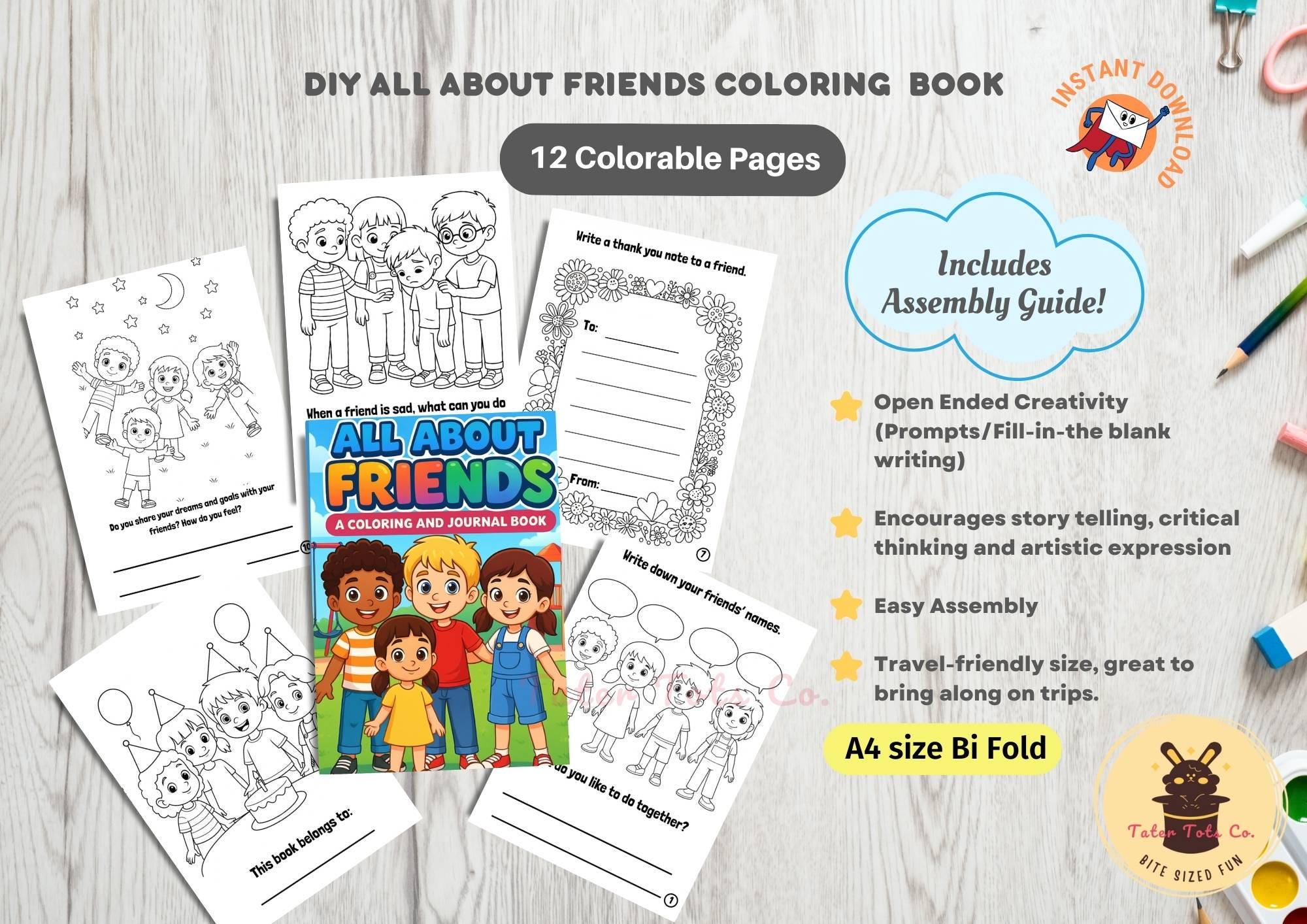 DIY Friendship Journal Coloring Book: Kids' Story Prompts (PDF Download A4 Size)
