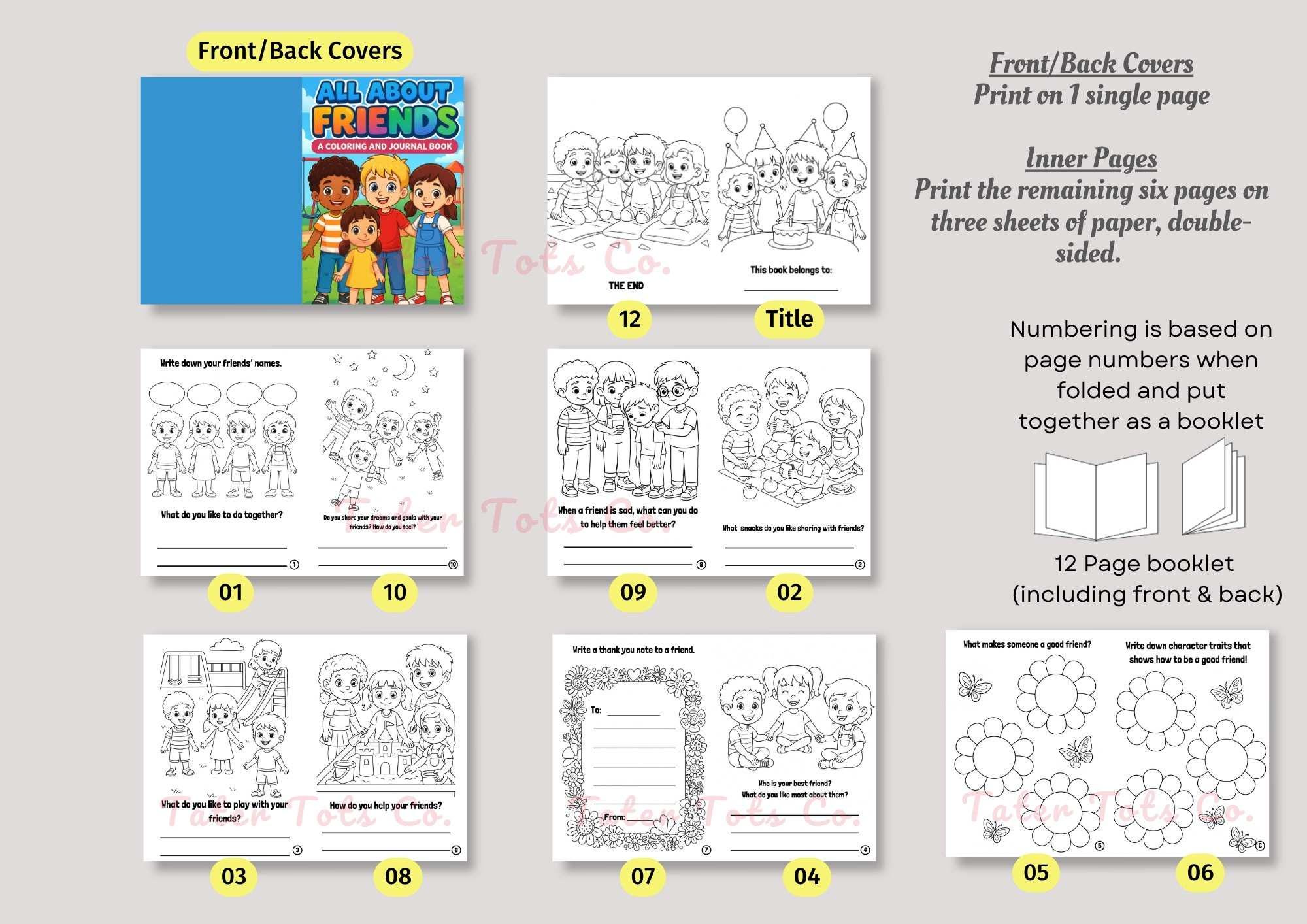 • All About Friends DIY Coloring Friendship Journal Storybook A4 size bi-fold