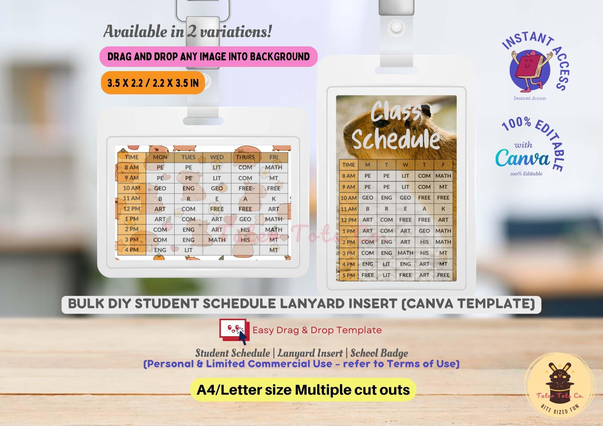 DIY School Schedule | Bulk 8-in-1 Vertical & Horizontal Lanyard Insert Canva Template Instant Access