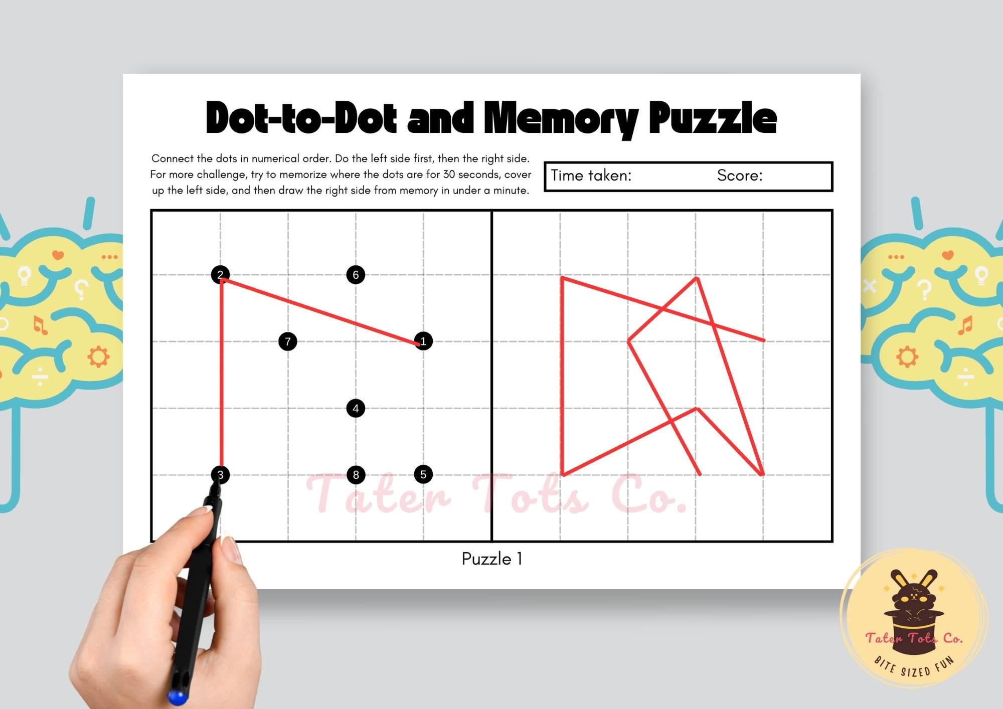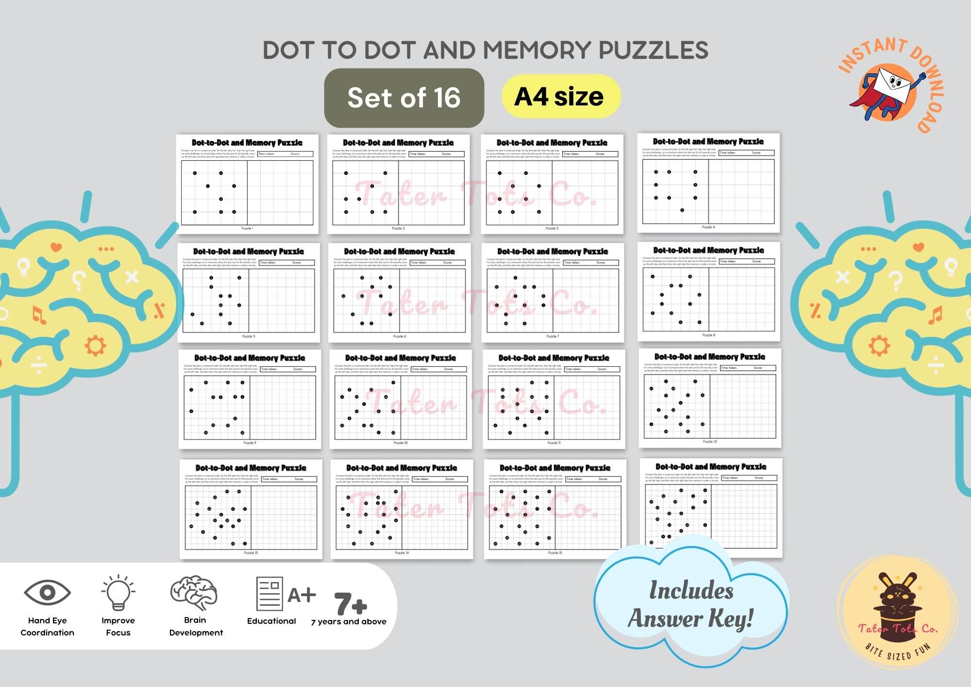✅ 16 unique dot-to-dot and memory puzzles (PDF format)