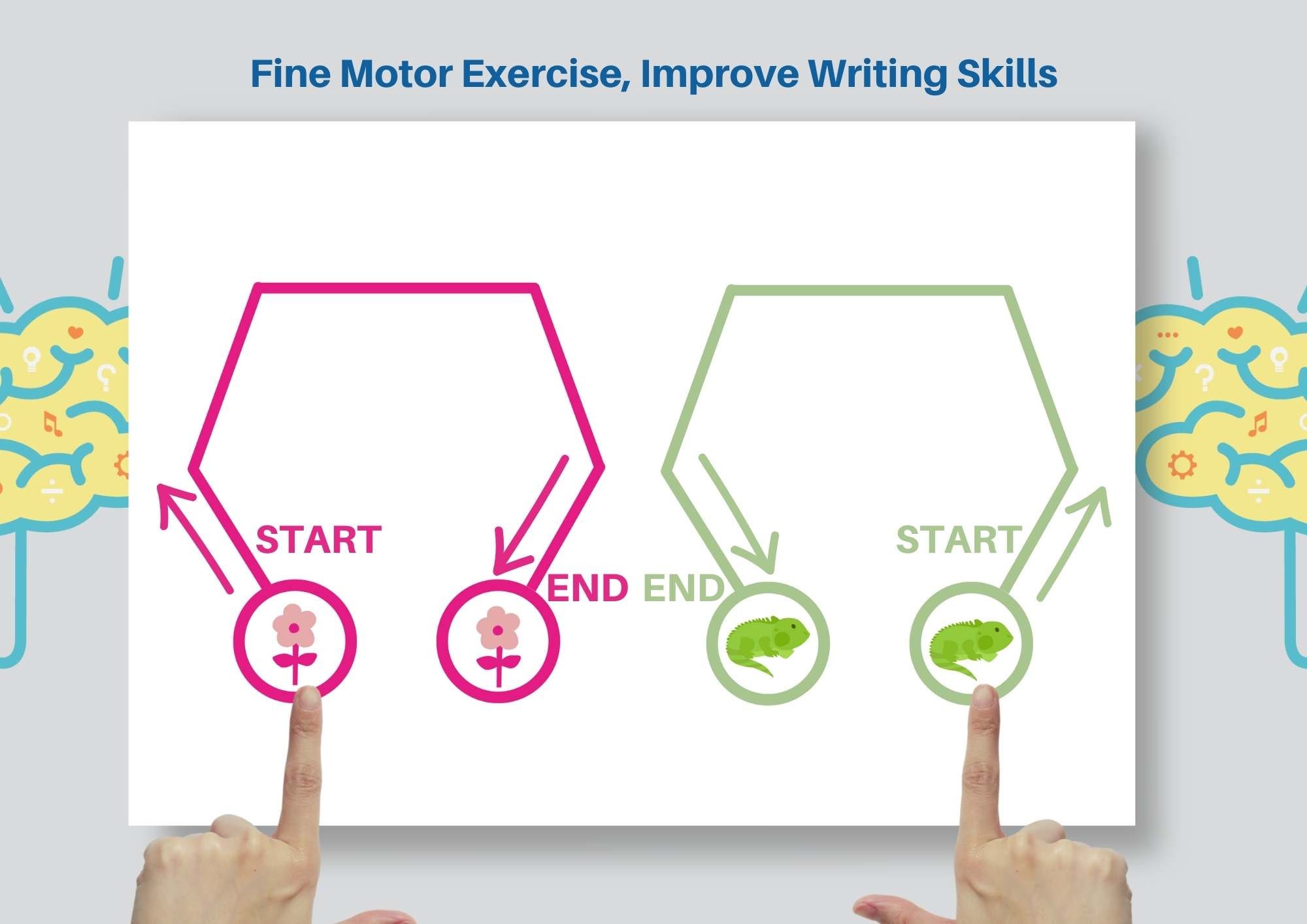 Let your child practice using both fingers at the indicated starting point and follow the path while drawing together with both fingers.