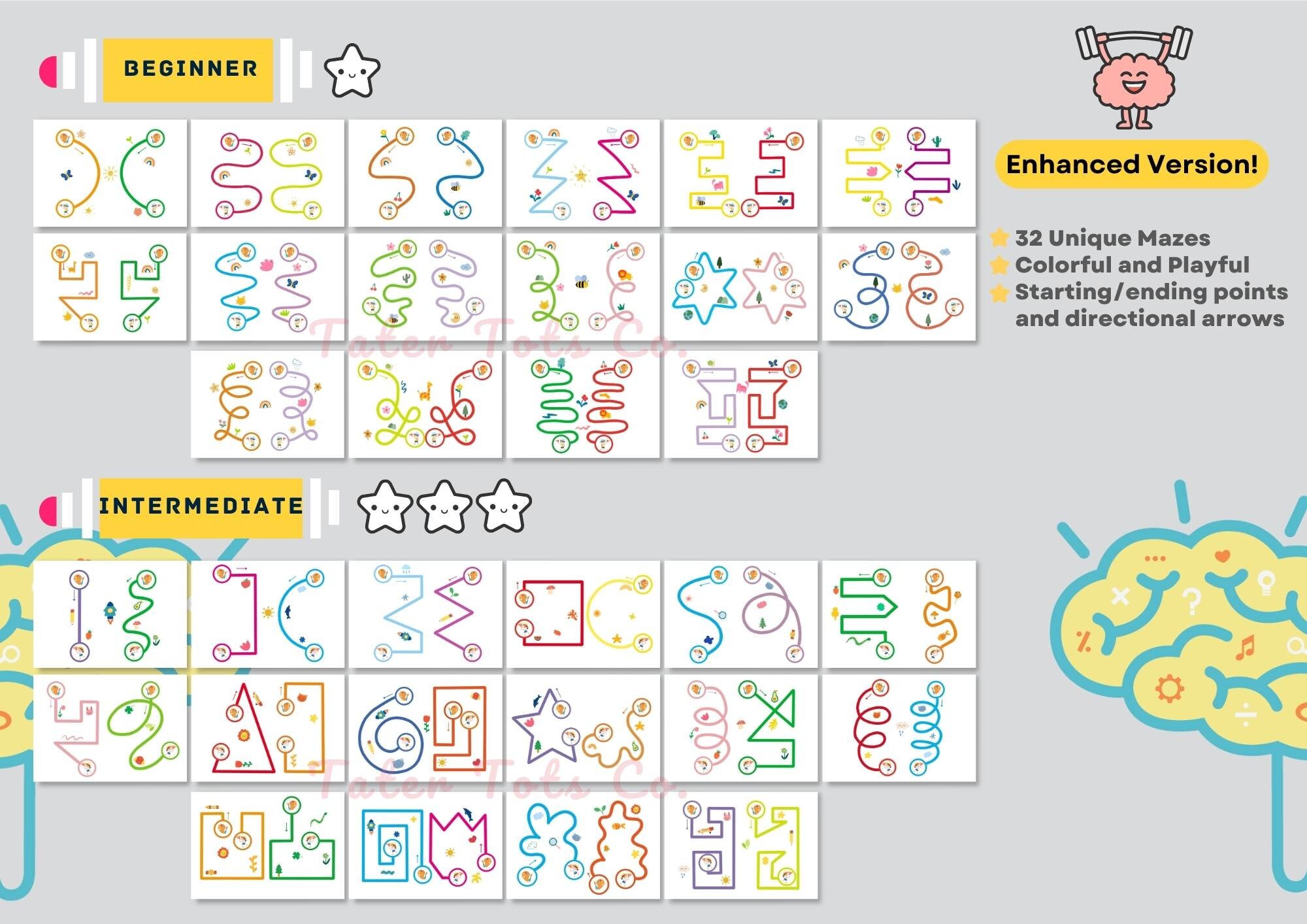 Colorful and Playful: The cute doodles and illustrations add an element of fun to the game with starting/ending points and directional arrows.