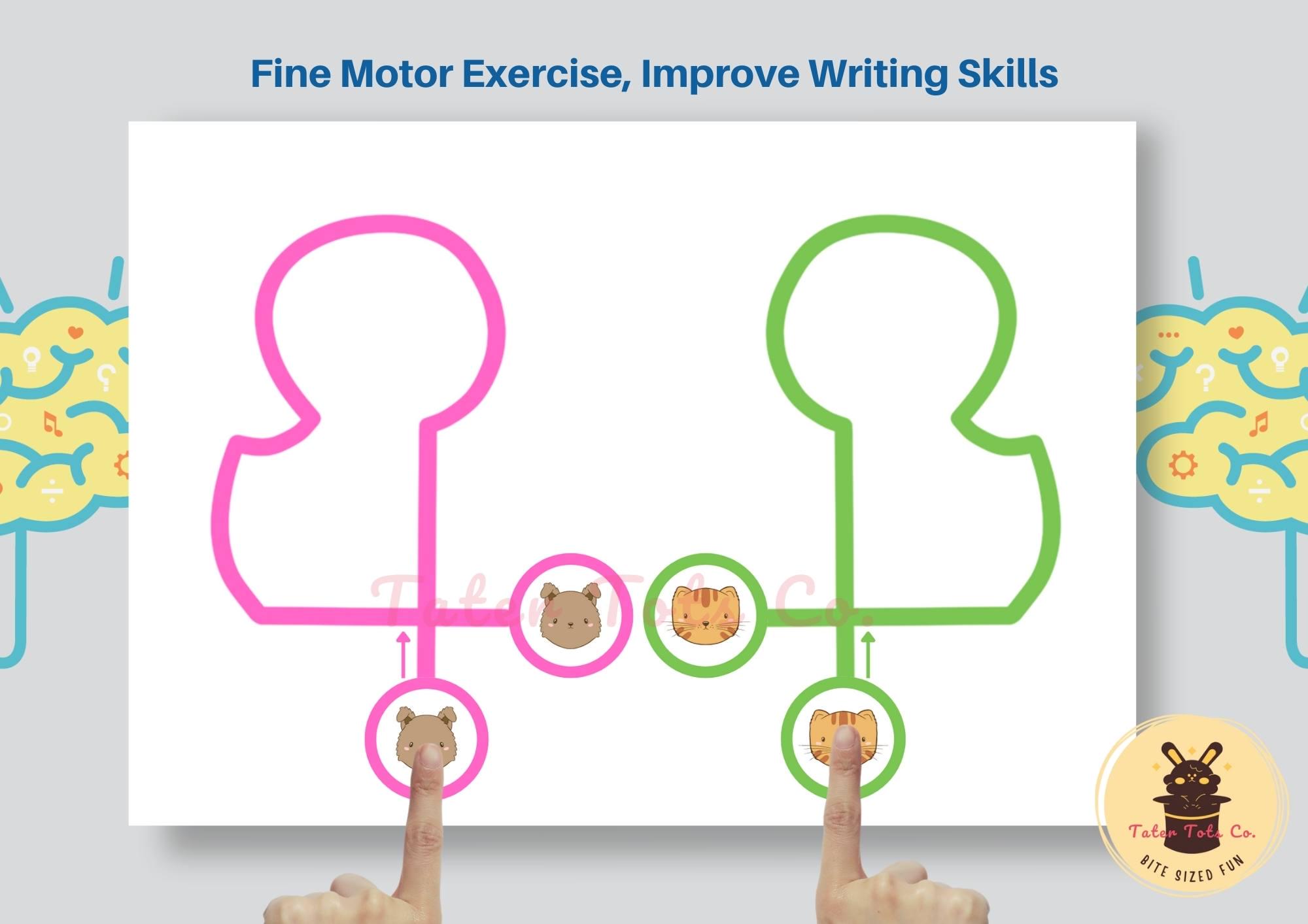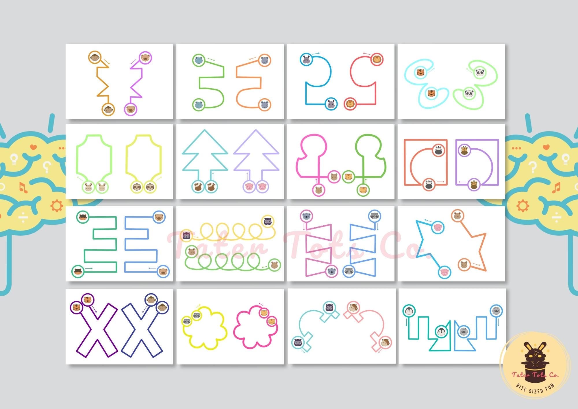 Double Doodle Bilateral Finger Mazes - Cute Animal Theme Beginner Level Cognitive Skills Puzzles (Set of 16) - Instant Download PDF