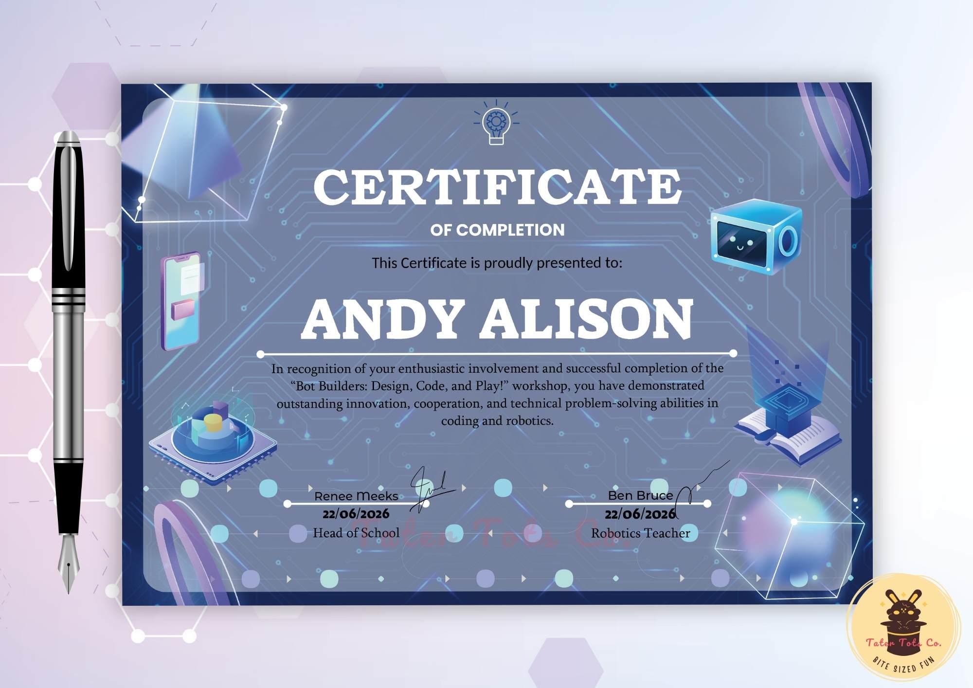 Editable Technology Award Certificate: STEM, Coding, Robotics (PDF Download)