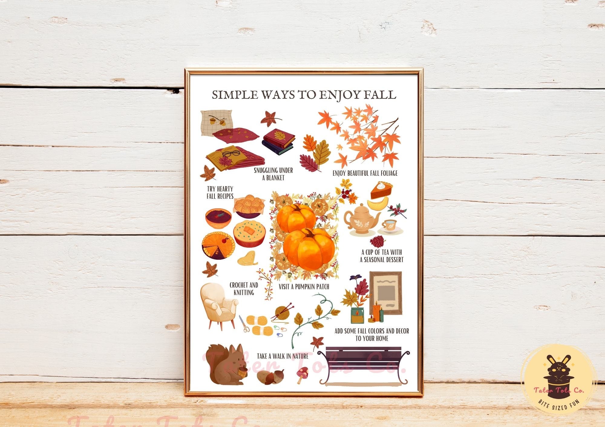 Discover delightful ways to embrace the beauty of the fall season with our charming wall art printable, "Simple Ways to Enjoy Fall."