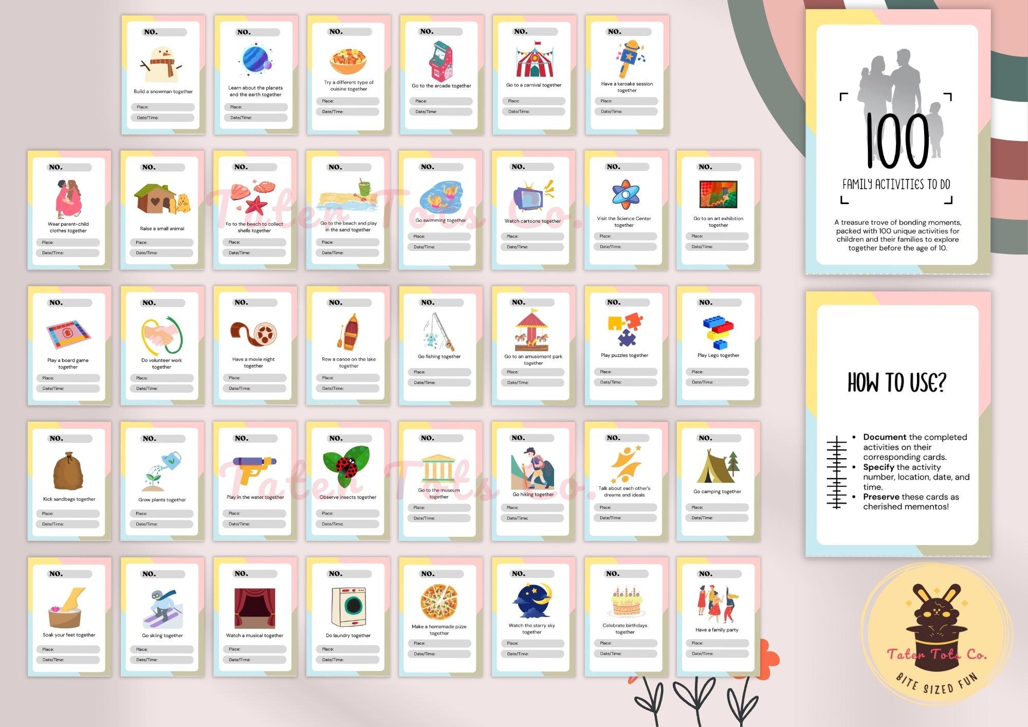 Family Activities Bucket List: 100 To-Do Cards (Digital Download)