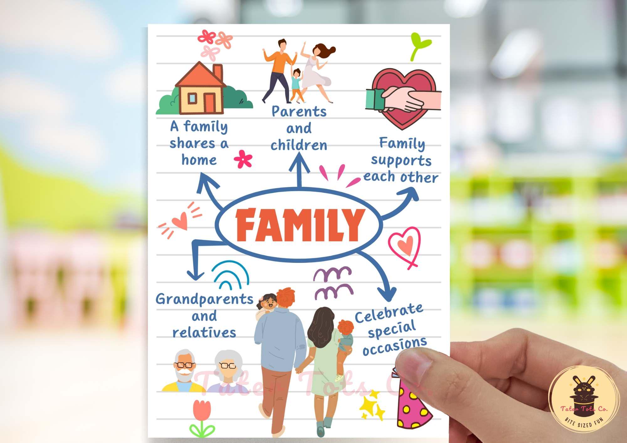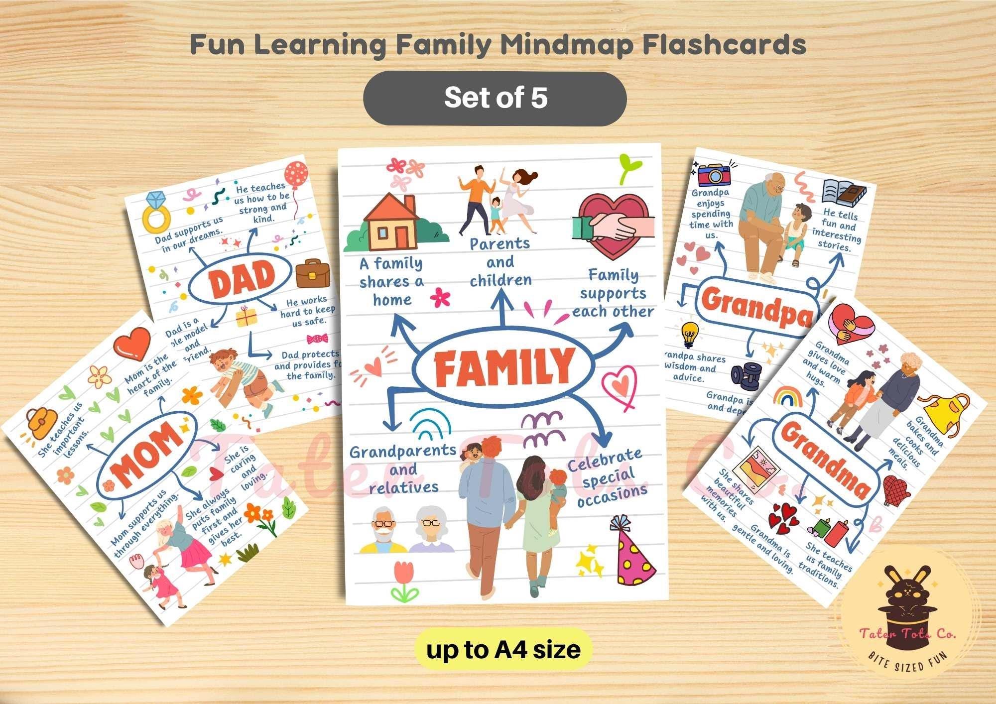 Family Mindmap Flashcards: Educational Charts for Kids (PDF Download)