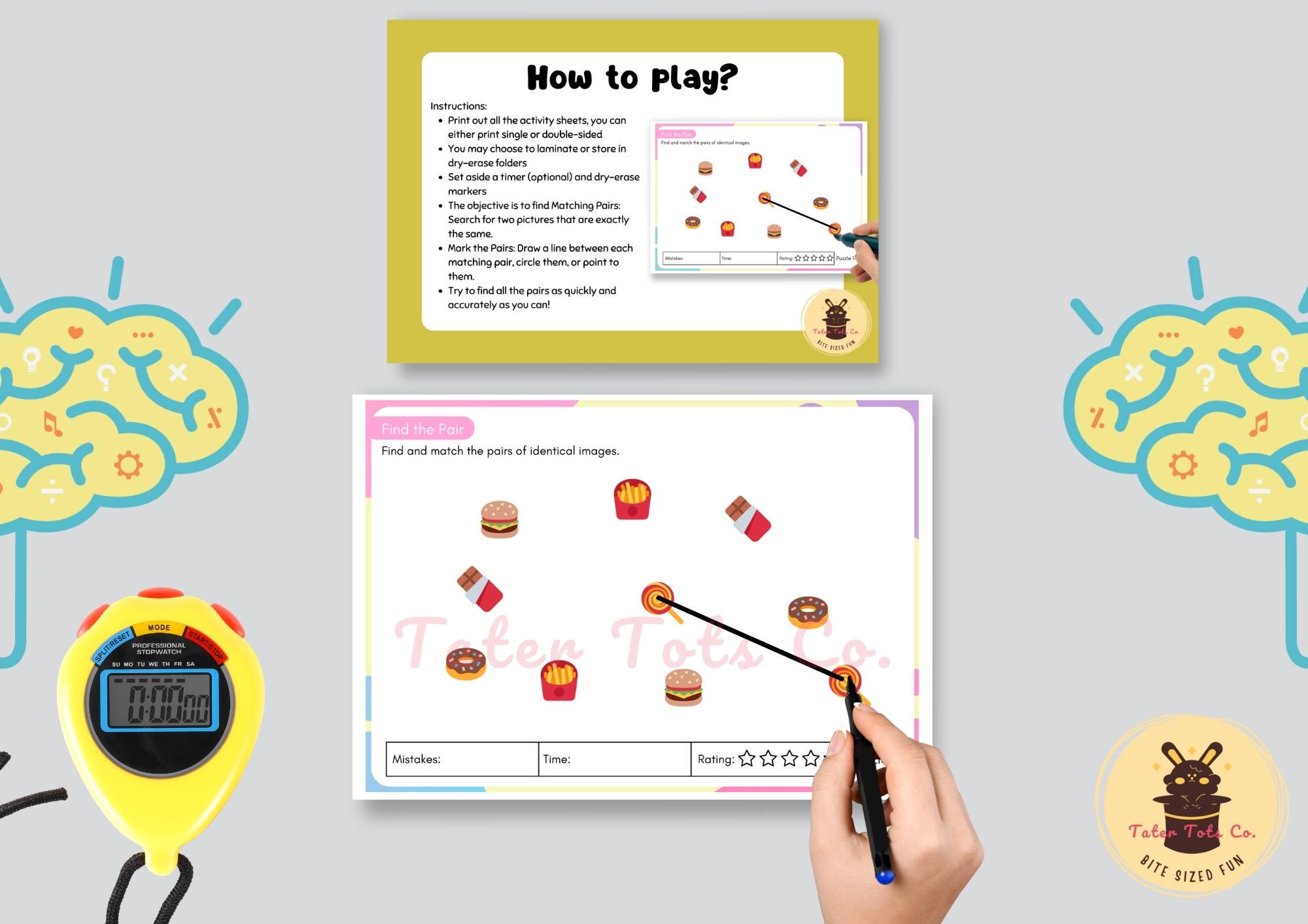 Bring fun and learning to your home or classroom with this Find the Pair Game Bundle! This resource features 15 colorful matching game sheets designed to boost attention, memory, and visual discrimination skills in children ages 3 and up. Each puzzle includes a variety of images for kids to find and match, making it suitable for preschoolers, kindergarteners, and early elementary students.