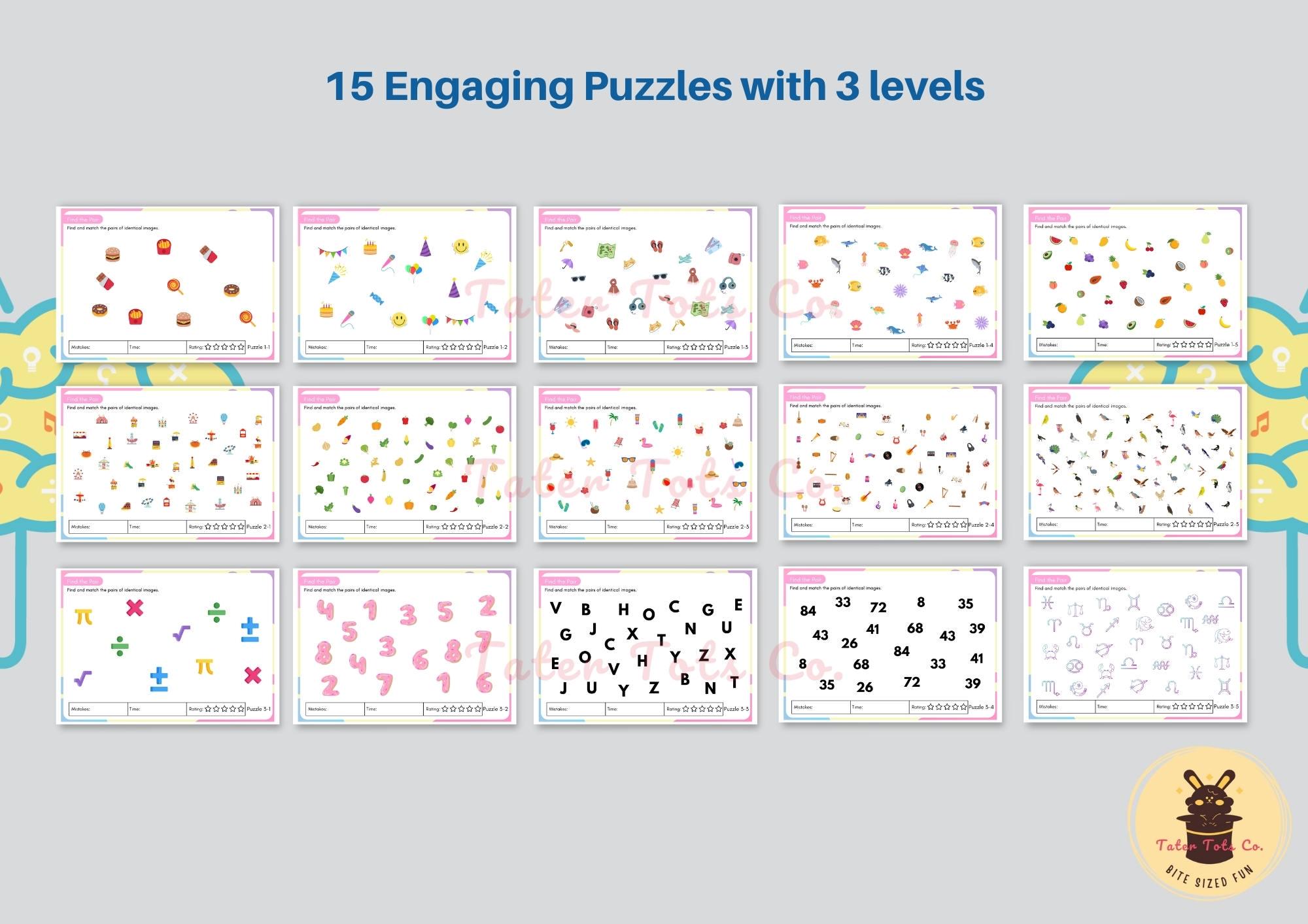 ✔️ 15 different printable matching game sheets (PDF format)