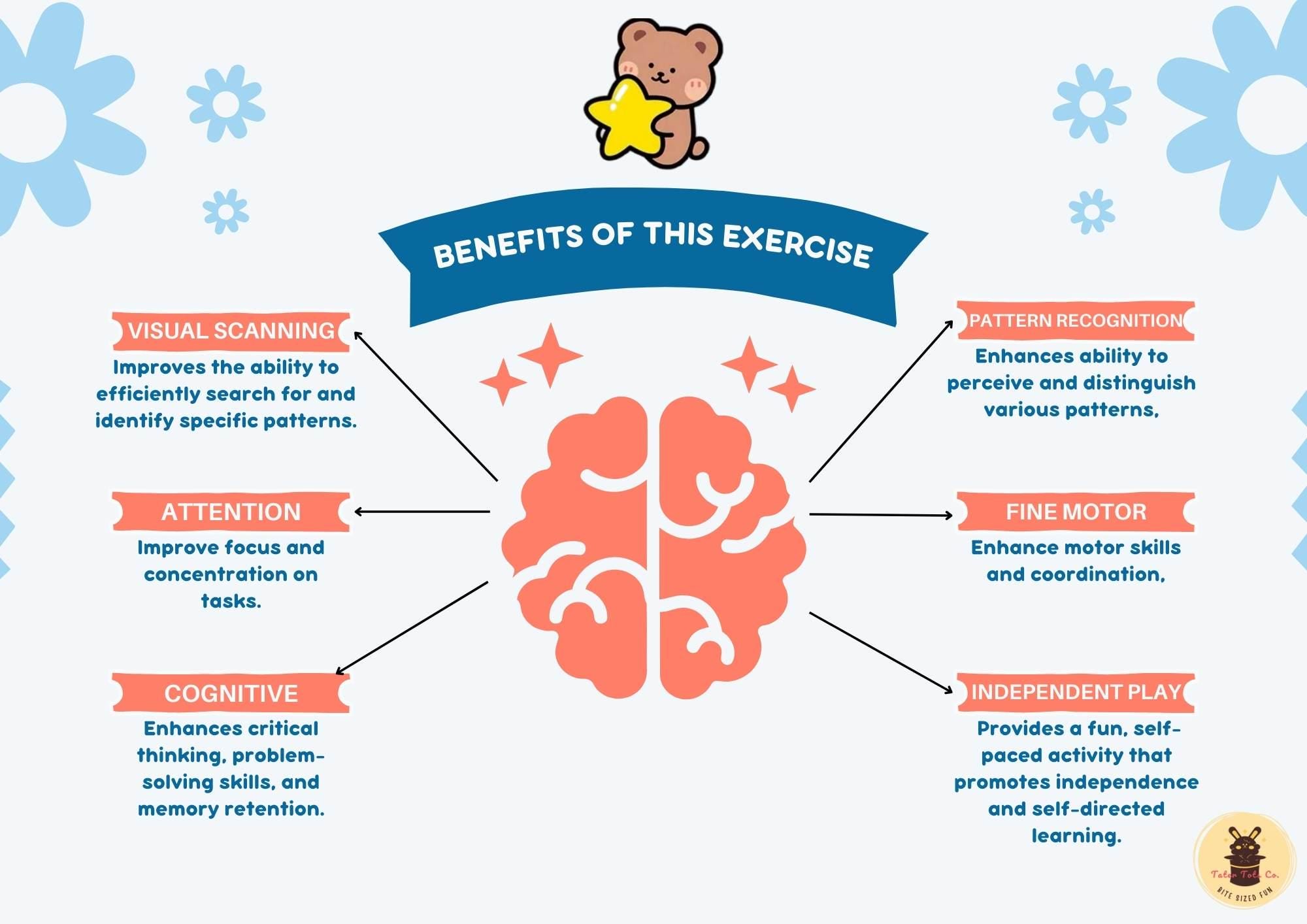 Boost your child’s visual scanning skills with this delightful Easter-themed floral pattern puzzle! Designed for kids aged 3 and up, this activity encourages hand-eye coordination, focus, and brain development through interactive play.