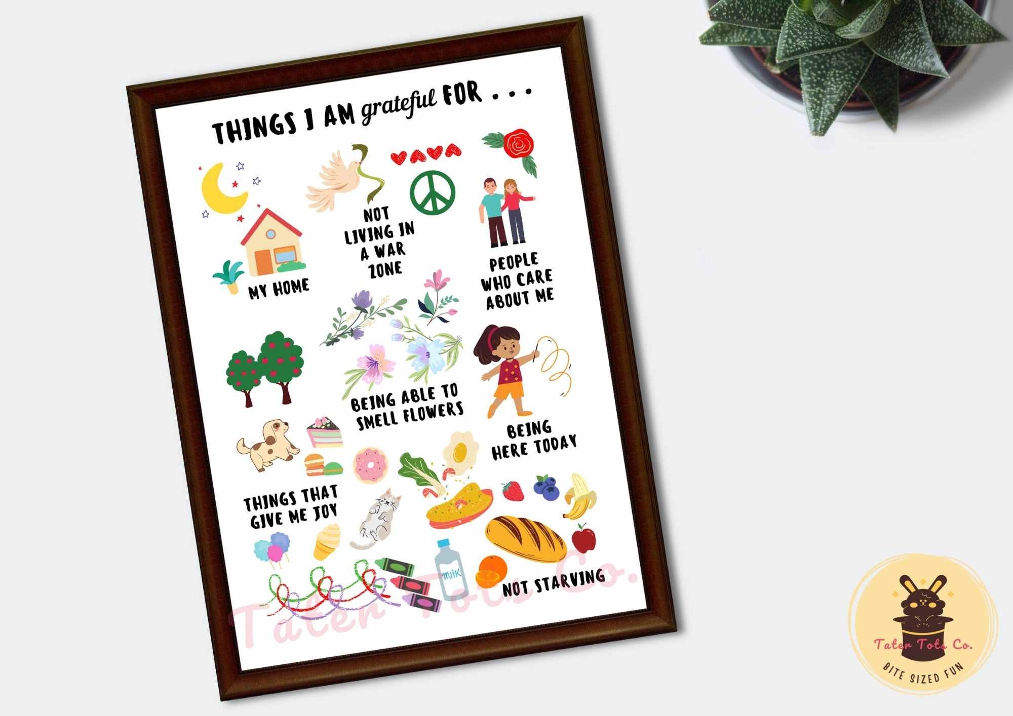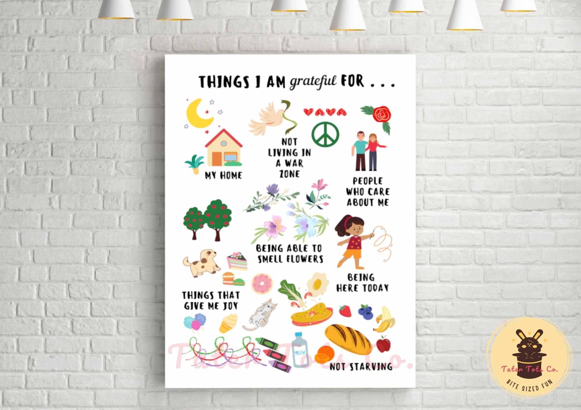 Gratitude Poster for Kids: Positive Affirmations, Playroom Decor (PDF)