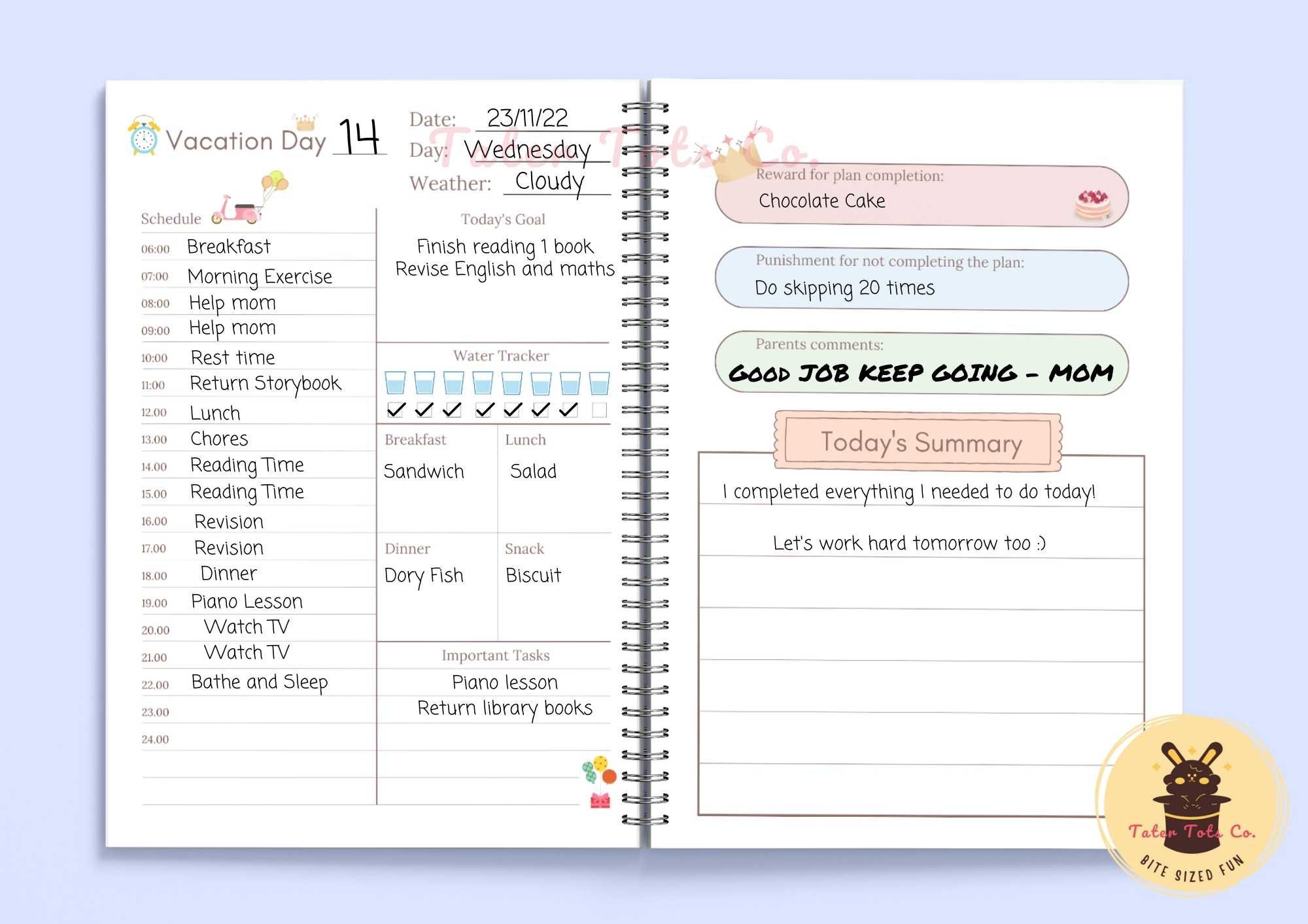 With our vacation planner, your child can set daily goals and track their progress. They can also create a routine that works for them, so they can stay productive and engaged throughout their vacation. Whether they want to learn a new skill or explore a new place, our planner will help them stay organized and motivated.