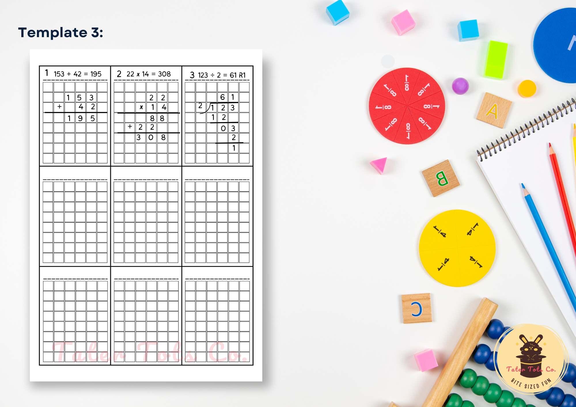✅ 3 Printable Templates: Versatile practice papers suitable for various math exercises and problem types.