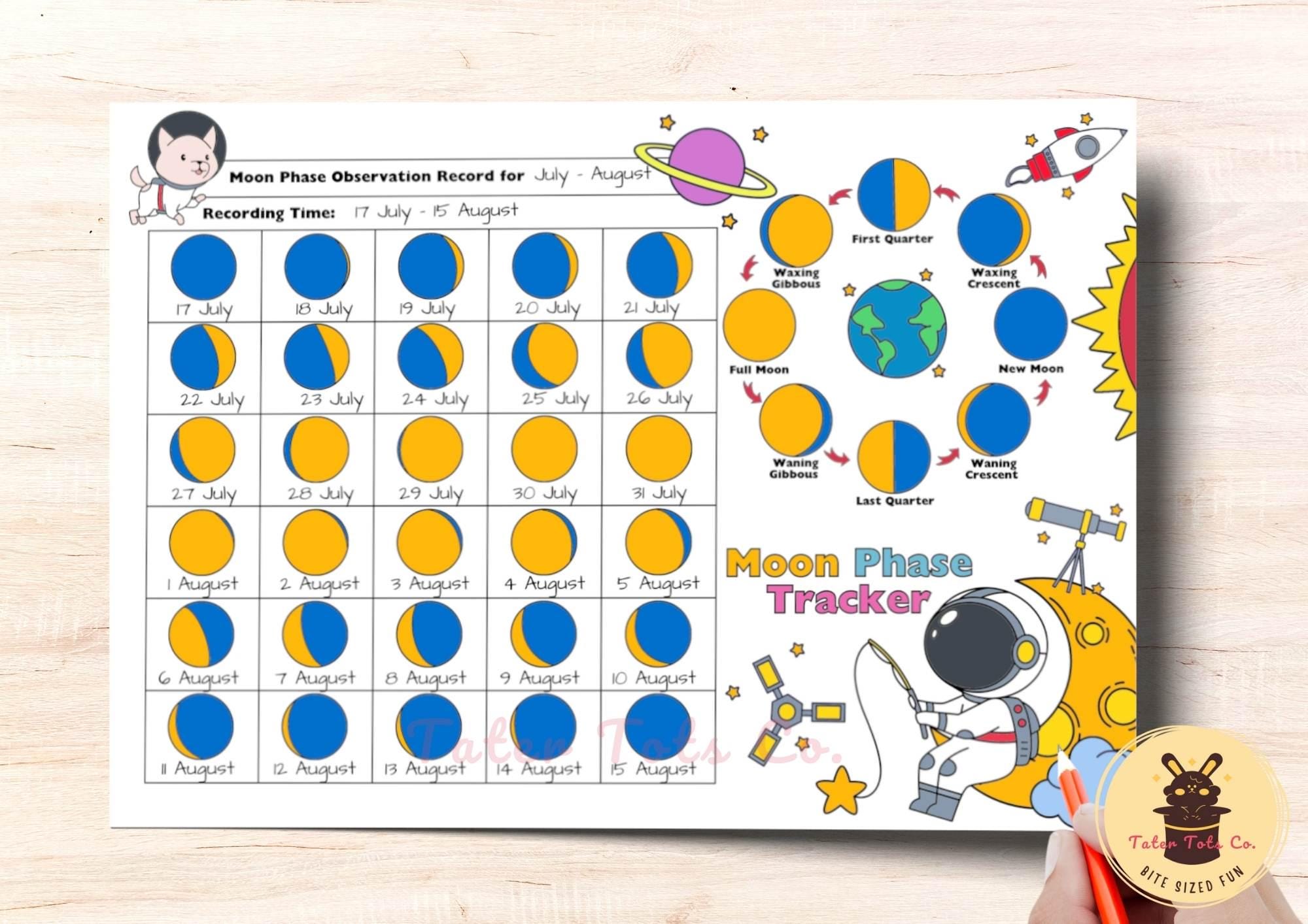 This resource allows kids to draw and color their way through 30 days of moon phases, making learning about the moon both interactive and enjoyable. Each page encourages creativity as children sketch the moon's various stages—from the new to the full moon—while tracking its changes over the month. This tracker fosters artistic expression and enhances understanding of the moon's orbit and its impact on Earth. Suitable for homeschooling, classroom activities, or family fun nights, this resource is a must-have for any budding astronomer eager to learn about our celestial neighbor.