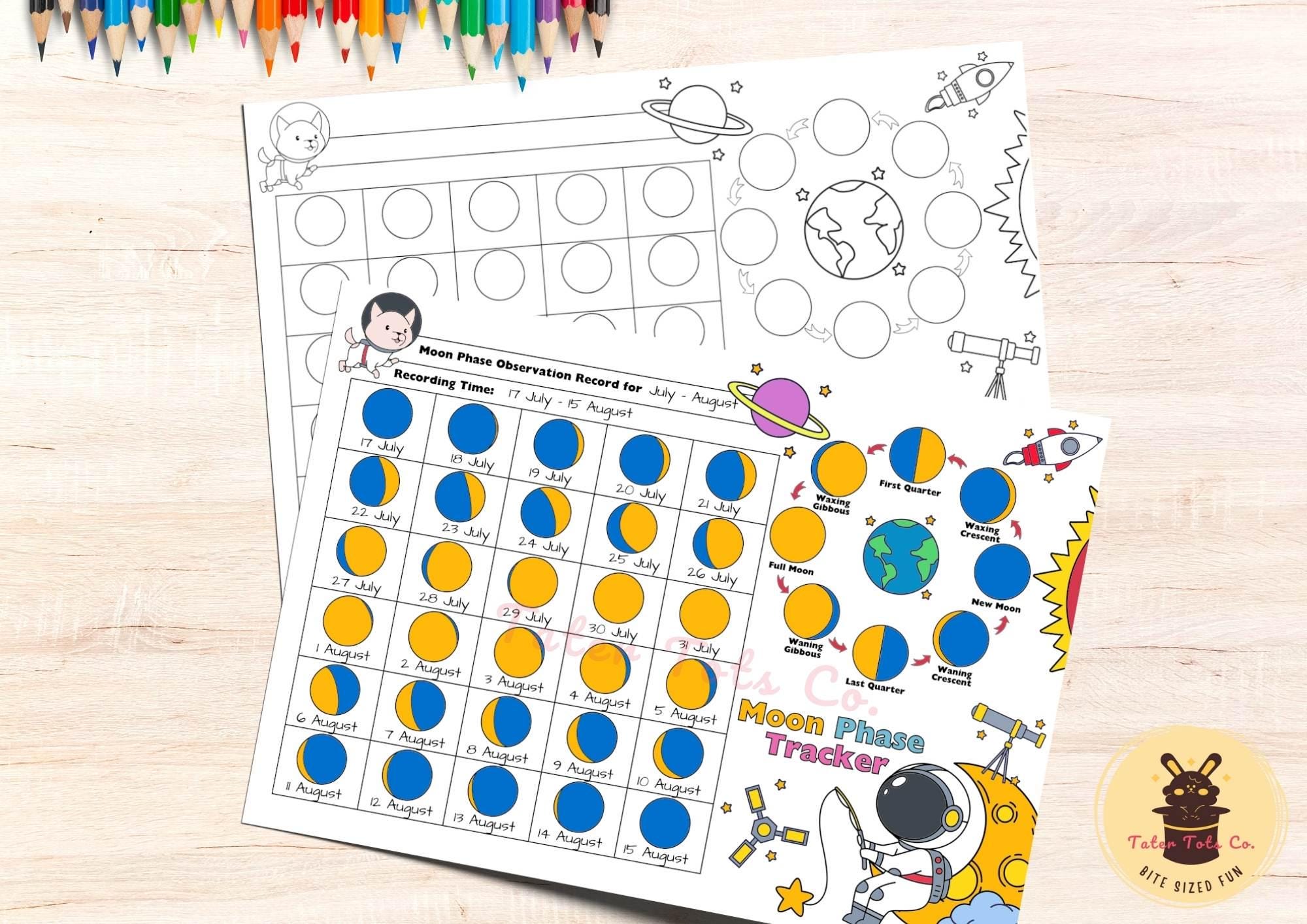 Moon Phase Tracker for Kids: Color & Learn (Instant Download PDF)