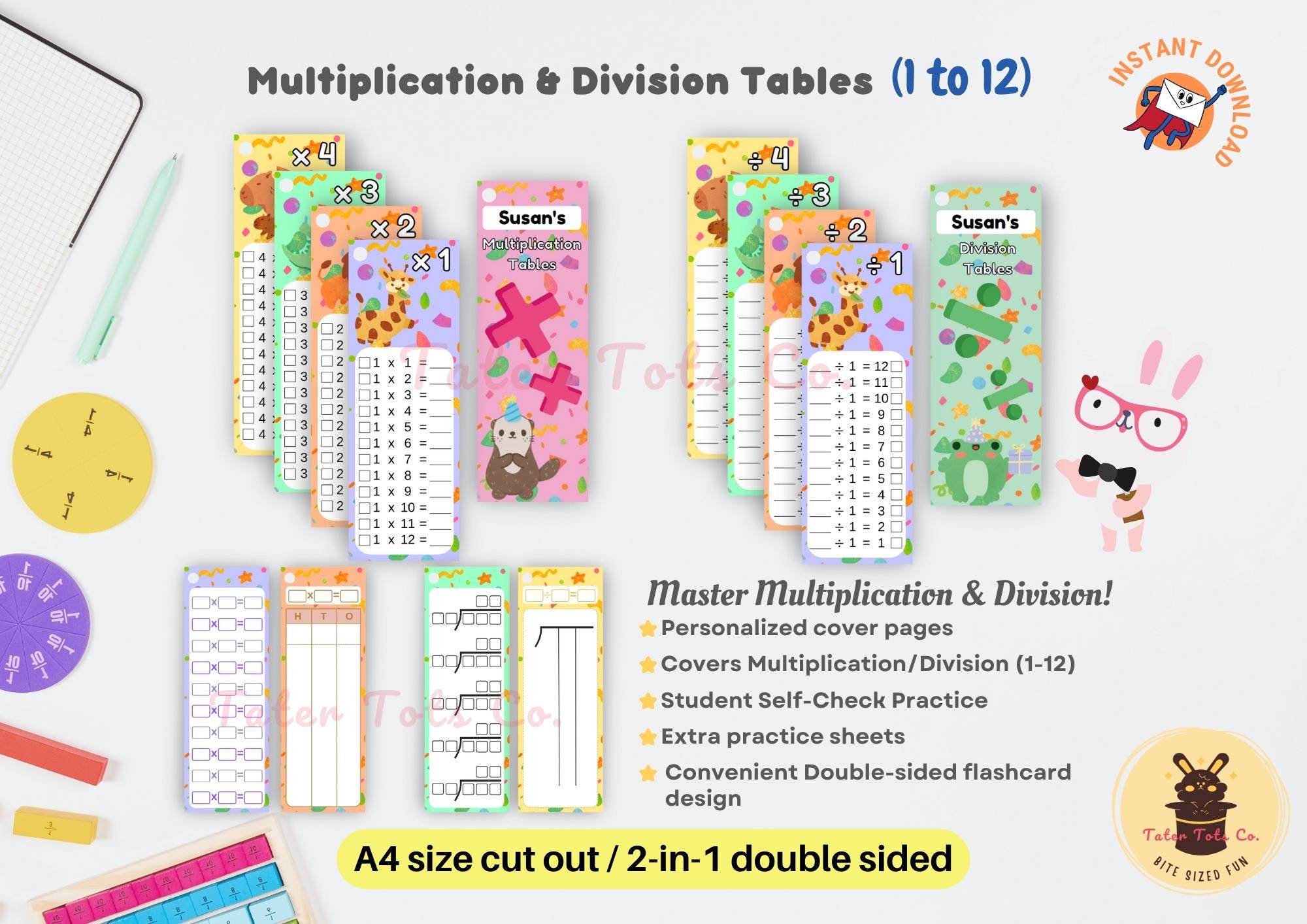 Help your child master division facts with this engaging Printable Multiplication and Division Practice Sheets (1-12) double-sided flashcard bundle! Featuring fun animal illustrations, these colorful activity sheets make math practice enjoyable and motivating for kids.